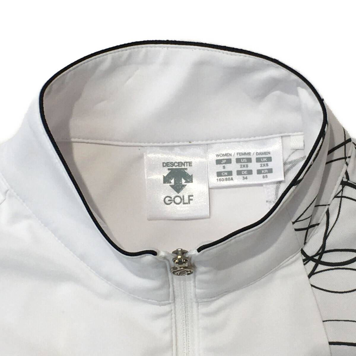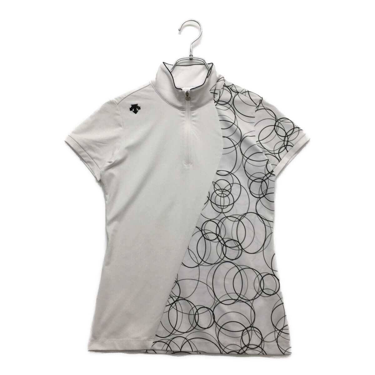 coco 中古【SALE】デサントゴルフ レディース 半袖シャツ S 白 ホワイト ハーフジップ 和柄 枯山水柄 レターパックプラス発送可 91039
