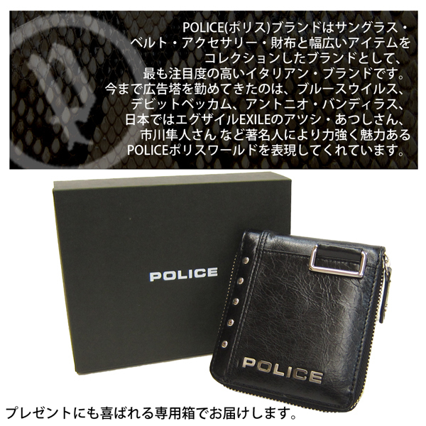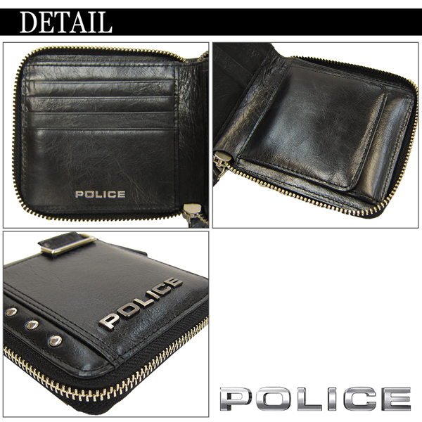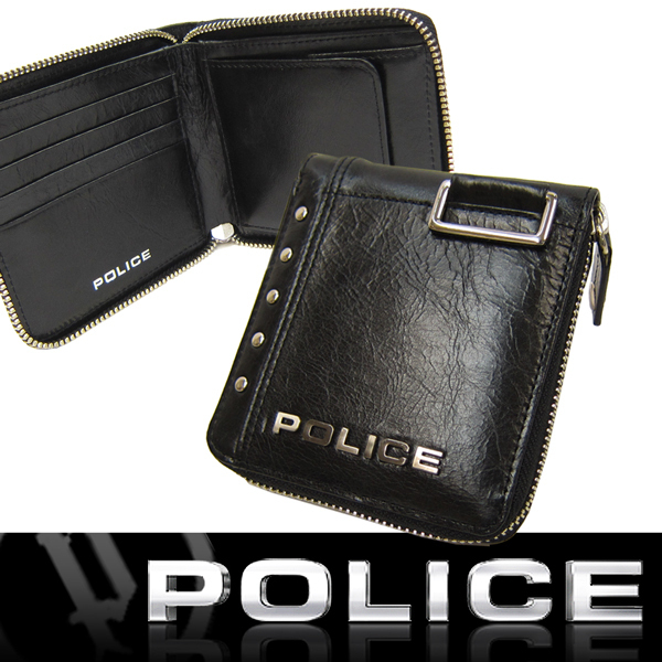 POLICE ポリス 二つ折り財布 牛革 ラウンドファスナー スタッズ Avoid PA-58601 BK 国内正規代理店商品 (49) 新品