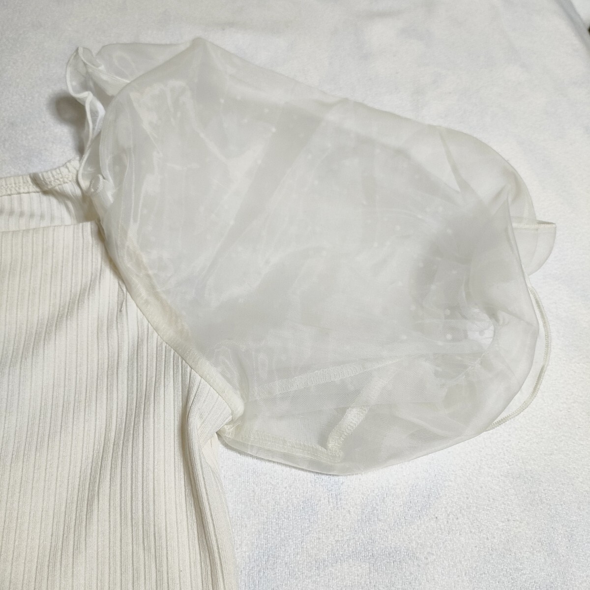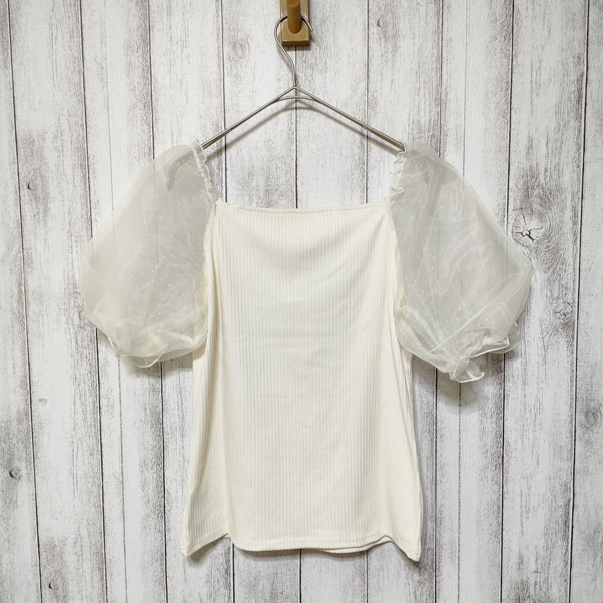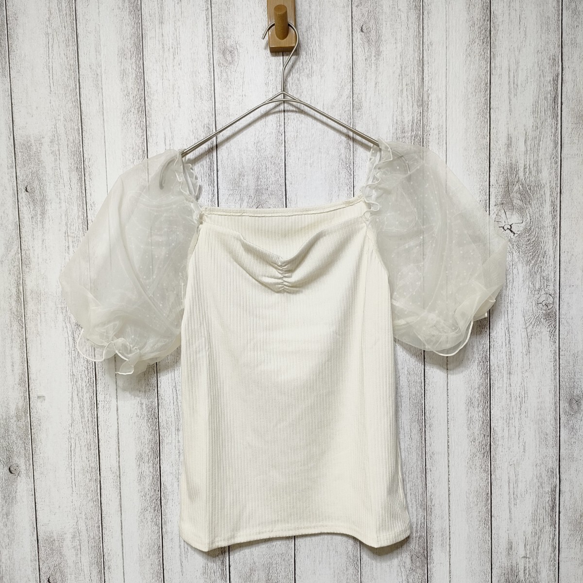 ふんわりとしたスリーブ部分を透け感ある素材で仕立てたリブトップス。