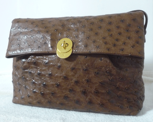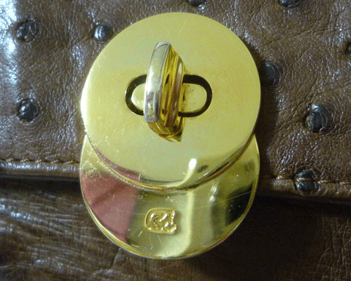 ☆美品☆ オーストリッチ 本革 ブラウン 茶 斜め掛け ショルダーバッグ レディース ターンロック | ||