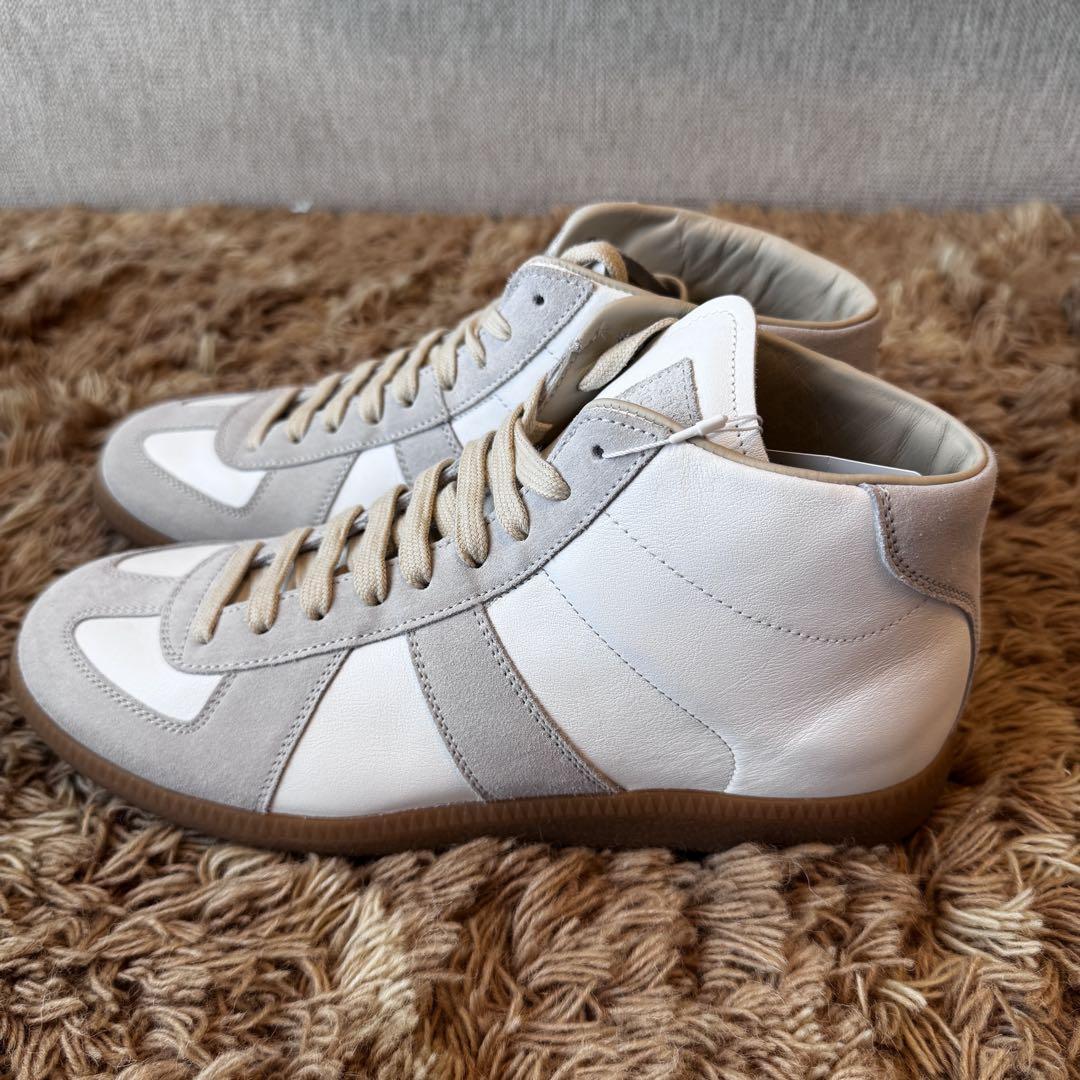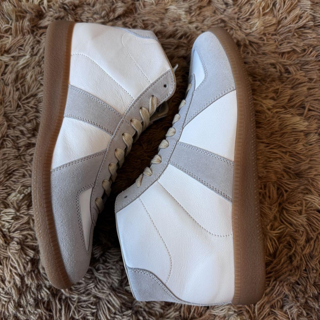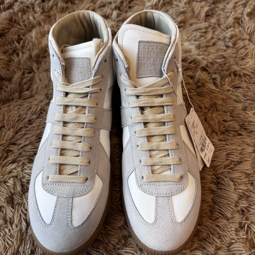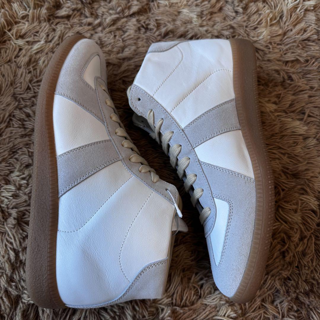 Maison Margiela(メゾンマルジェラ)のハイカットスニーカー(シューズ、靴)です。定番のジャーマントレーナーとなります。こちらは未使用付属品ありのため、プレゼントにもおすすめです。