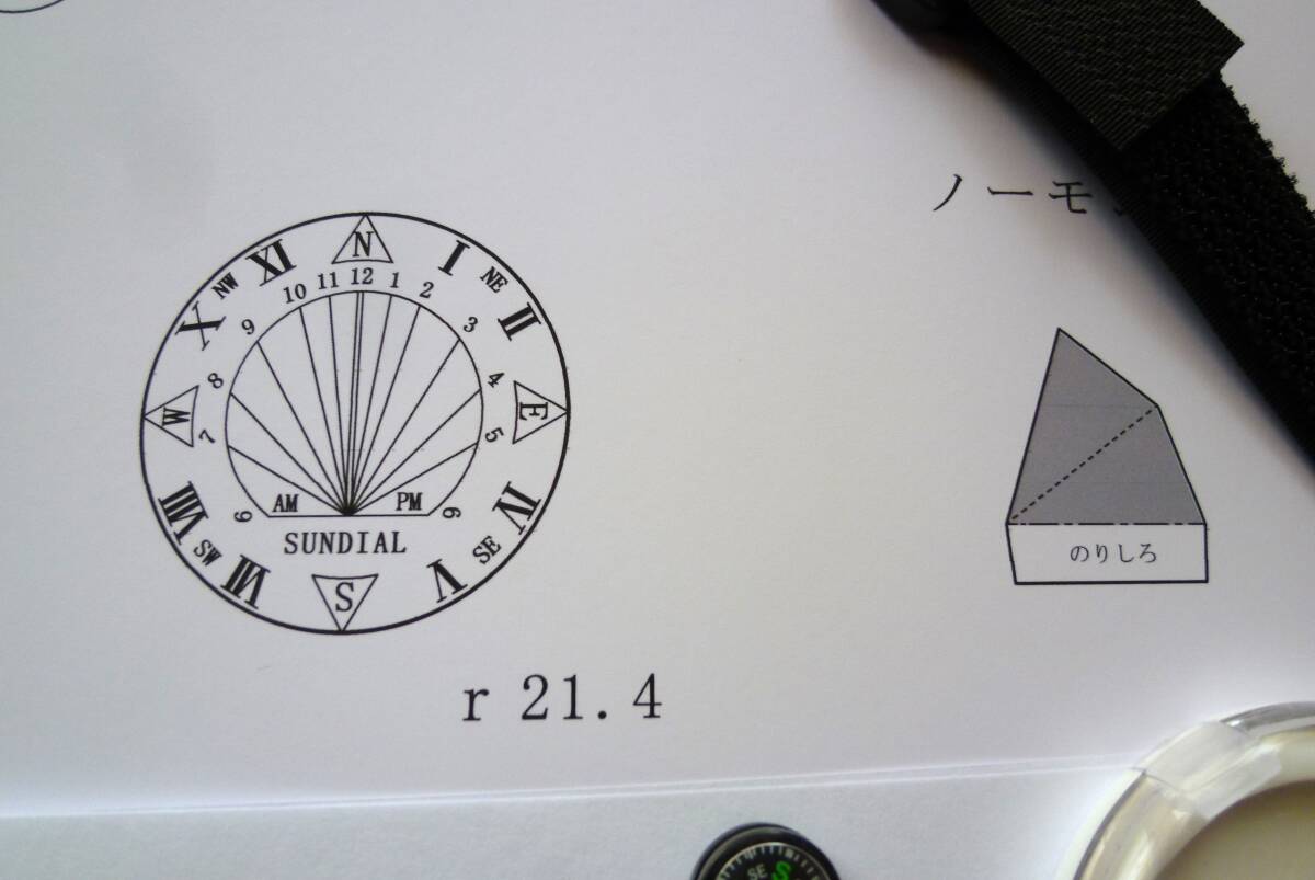 組立説明書・プラケース・方位磁石・平面型日時計展開図の型紙・マジックテープ25cmとバックル