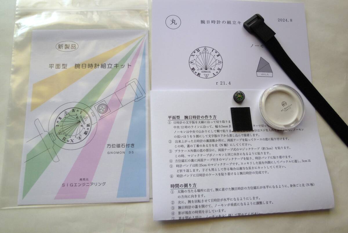 新作 平面型腕日時計の組立キット 方位磁石付き 丸