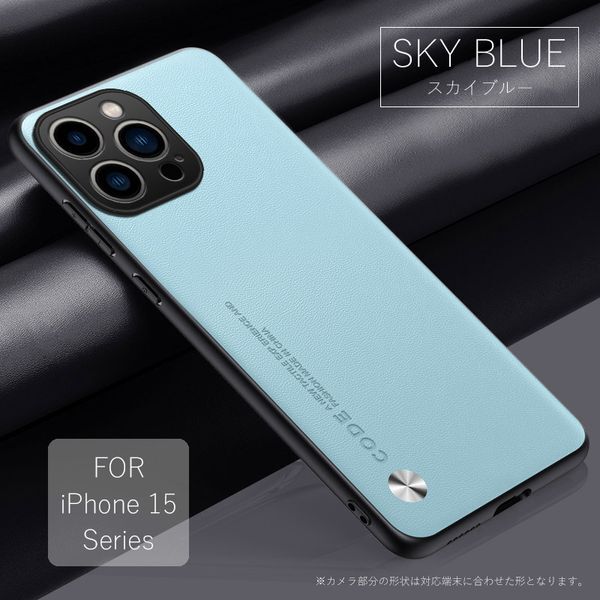 商品名 | iPhone 15 用 スマホケース 新品 PUレザー ソフト 耐衝撃 アイフォン 携帯 ジャケット シンプル 無地 スカイブルー |