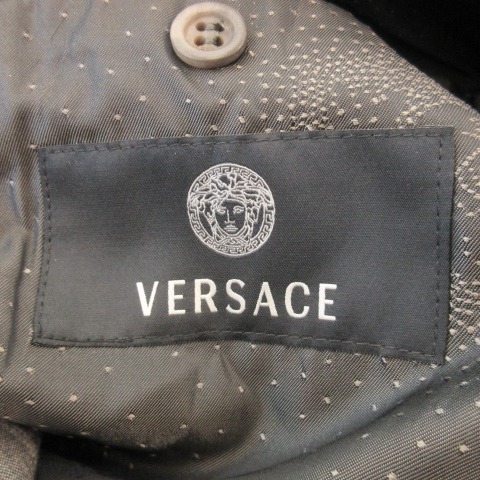 VERSACE シングルスーツ セットアップ 2点セット テーラードジャケット 総裏地 スラックス ストライプ 48R M グレー ■GY18 メンズ