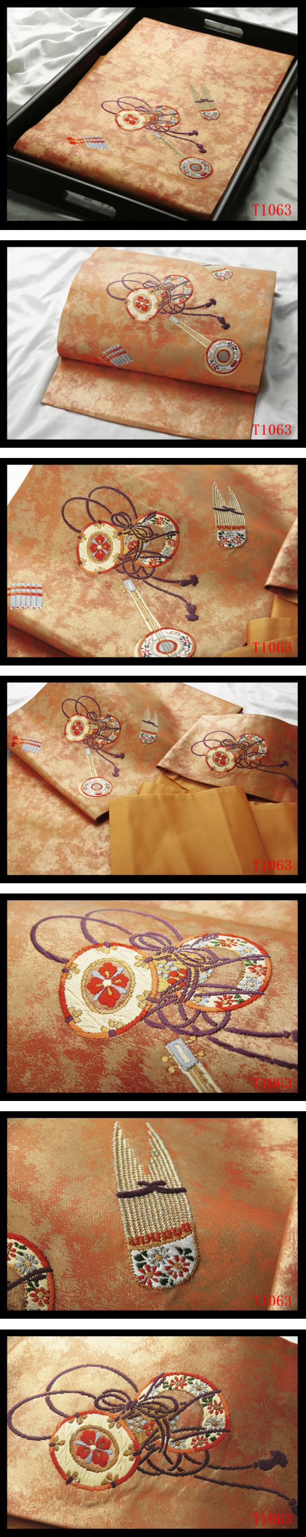 蔵【T1063】厳選美品 楽器紋 黄赤色地 気品豊かに 正絹純金糸高級美術名古屋帯 ◇検◇簪着物袋帯和装小物帯締め