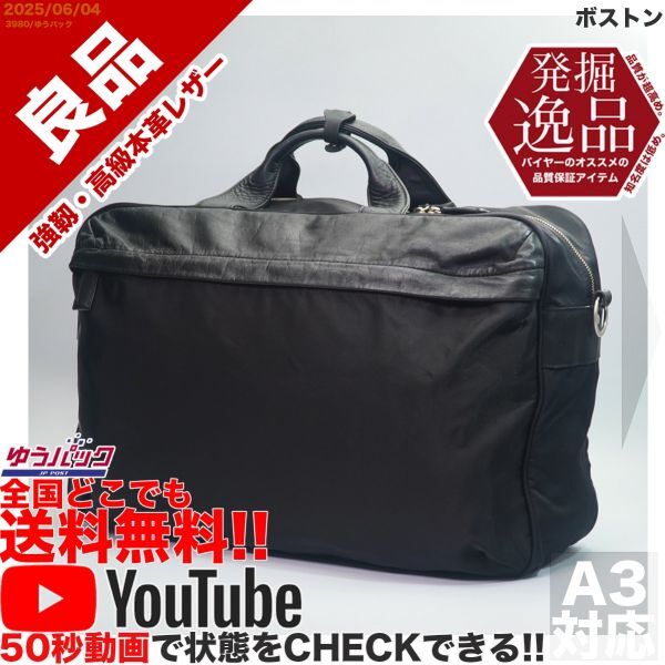 送料無料 即決 YouTube動画アリ 定価15000円 良品 発掘逸品 日本かばん協会 ボストン レザー 牛革 バッグ