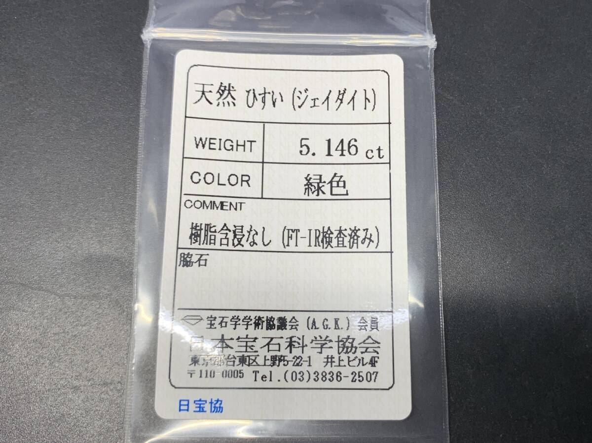 | 商品説明 | たくさんの商品の中からご覧頂きましてありがとうございます。 ★ご質問やオファー金額がある際はお気軽にコメントください。出来る限り頑張ります! ※数が多いのも大丈夫です。 ★ギフトラッピングを無料で承ります。 ご希望の場合は、ご購入時にお知らせ下さい。 ※準備にお時間を要する場合がありますのでご理解頂けると幸いです。 写真は、室内で撮影しております。 被写体となるものは撮影ライトの映りこみがありますのでご理解頂ければと思います。 商品状態は出来る限り画像で確認できるように撮影に努めておりますので、お写真でご確認いただければと思います。 ご不明な点は入札前にご質問宜しくお願いいたします。 ◎出品詳細 宝石ソーティング付き 天然 ヒスイ 翡翠 5.146ct 13.0×10.5×4.4 鑑定機関:日本宝石科学協会 |