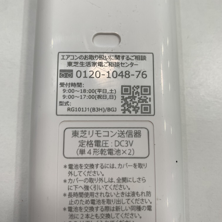 C1G329 【送料250円】エアコン リモコン / TOSHIBA 東芝 RG101J1(B3H)/BGJ 動作確認済み★即発送★ 冷房 暖房