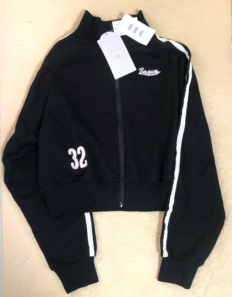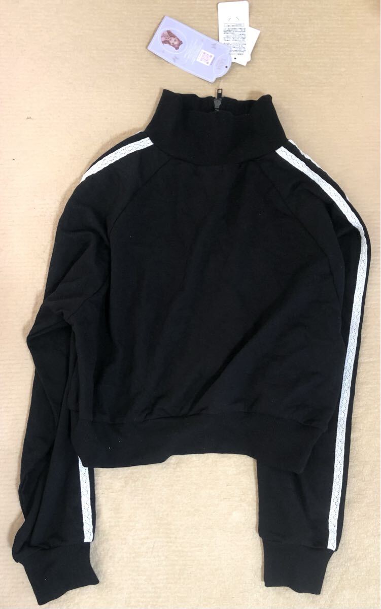 新品 タグ付き LANA コラボ 袖レース トラックジャケット 黒  Lサイズ 村上来渚 ショート丈 ミニ丈 ダンサー ダンス練習に
