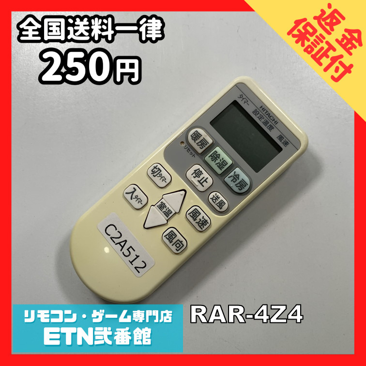C2A512 【送料250円】エアコン リモコン / 日立 ヒタチ HITACHI RAR-4Z4 動作確認済み★即発送★ 冷房 暖房