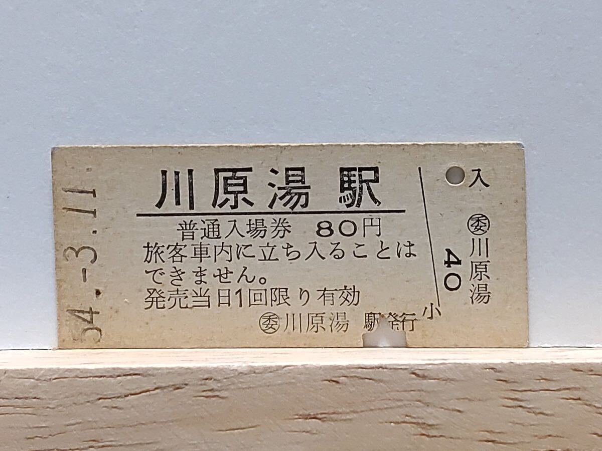 【切符/硬券】国鉄 吾妻線 川原湯駅 普通入場券 川原湯 駅発行80円 S54 @B