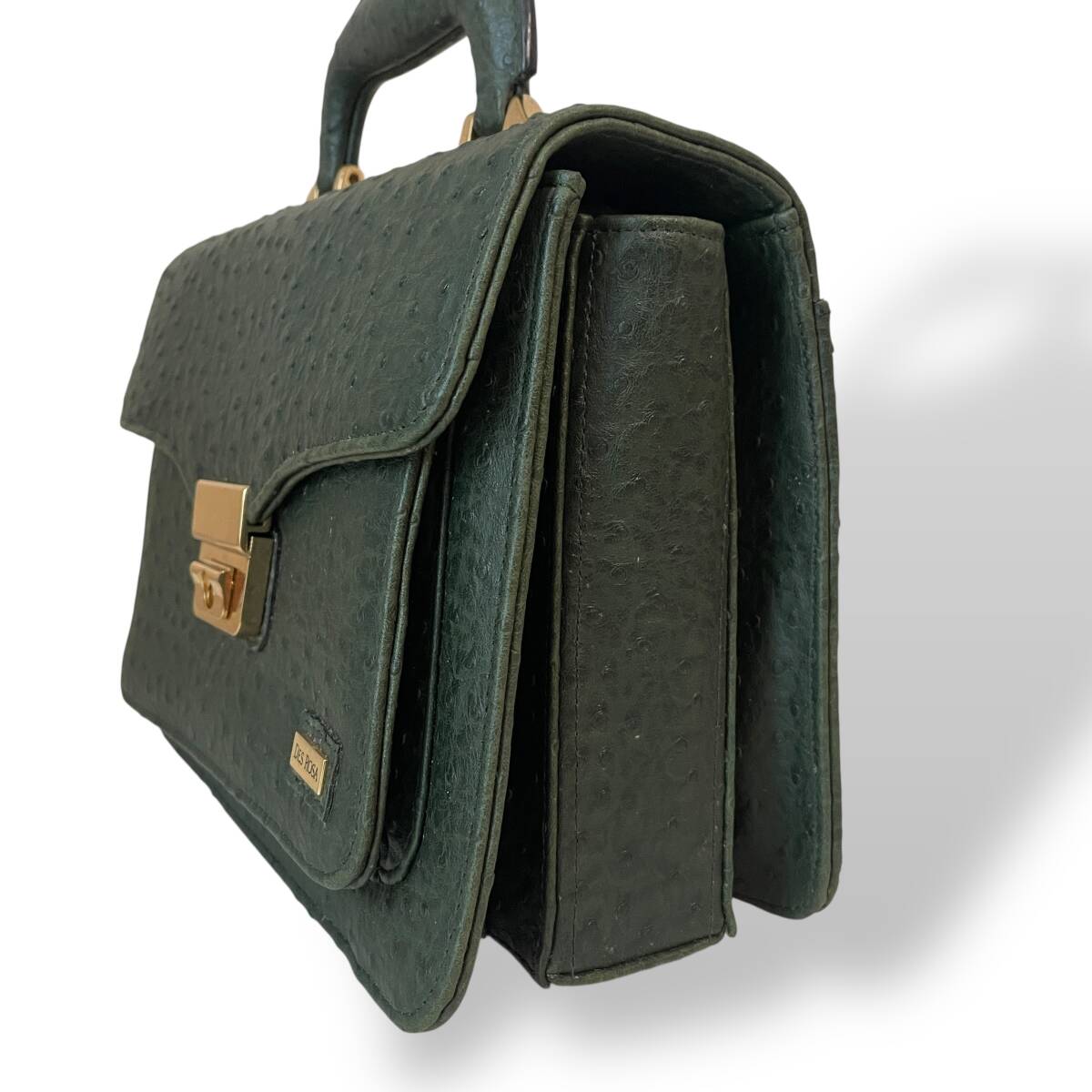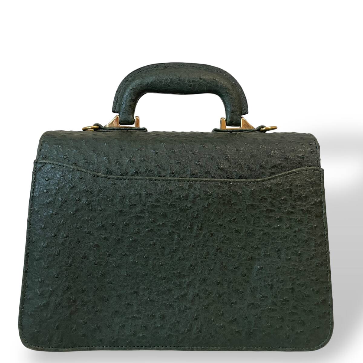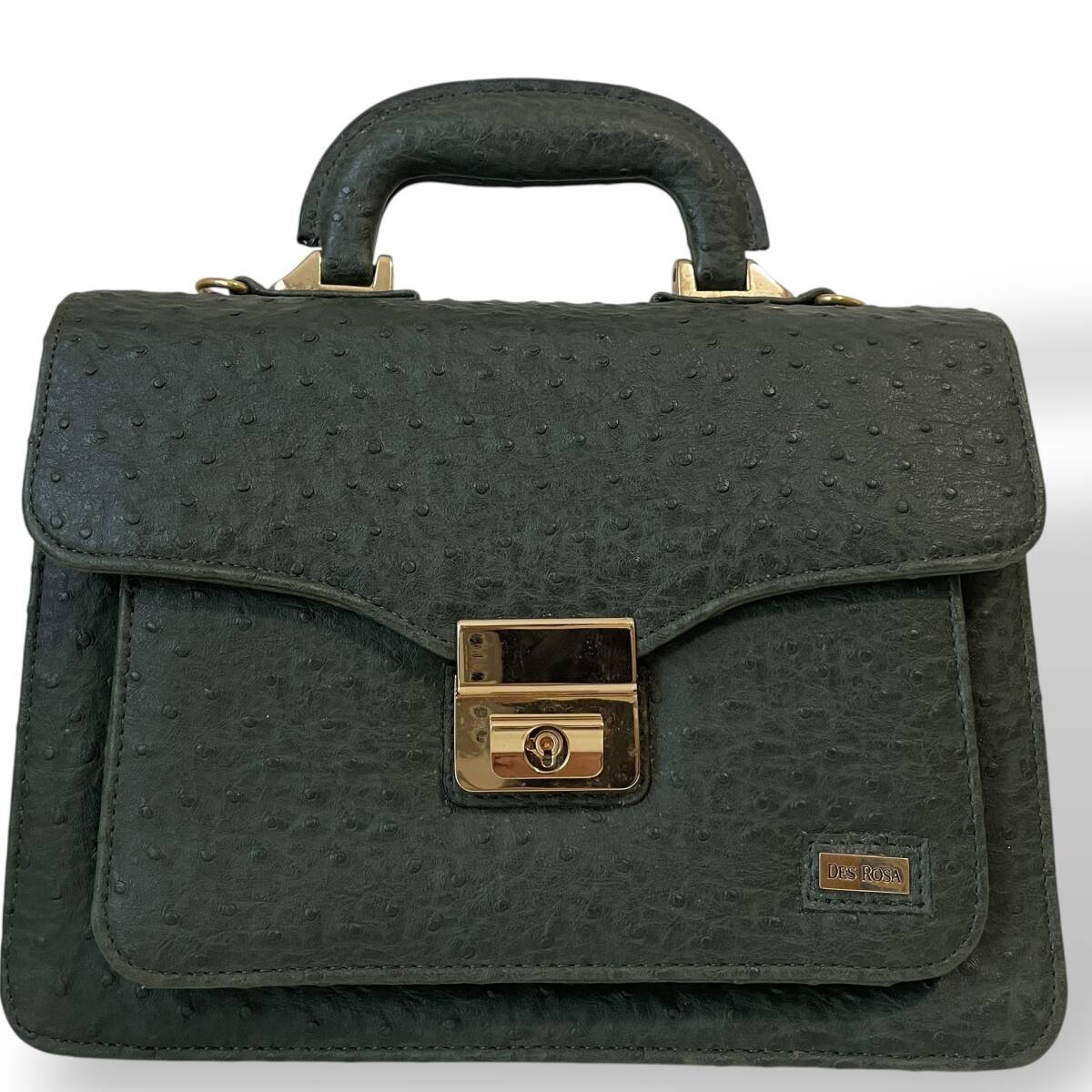 1円〜 ◇高級 入手困難品◇ DES ROSA オーストリッチ フラップ グリーン ゴールド金具 ハンドバッグ トートバッグ フォーマルバッグ