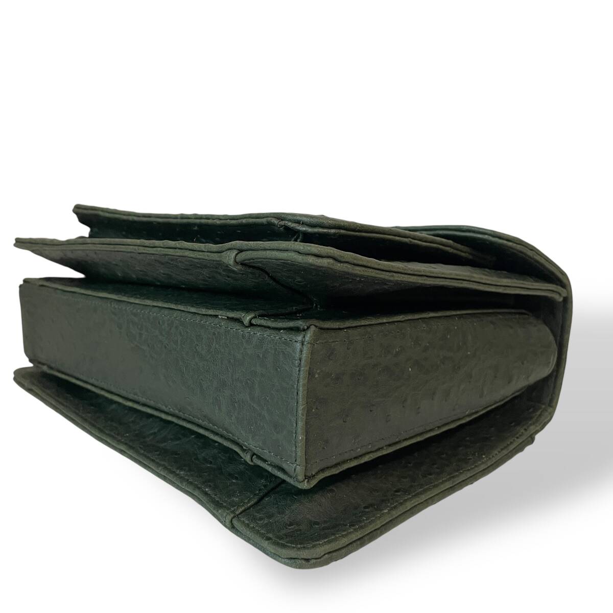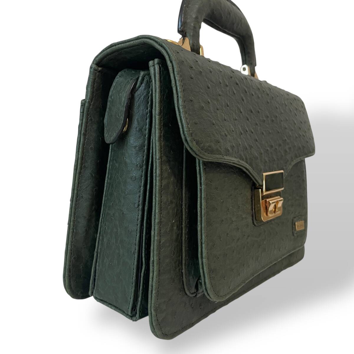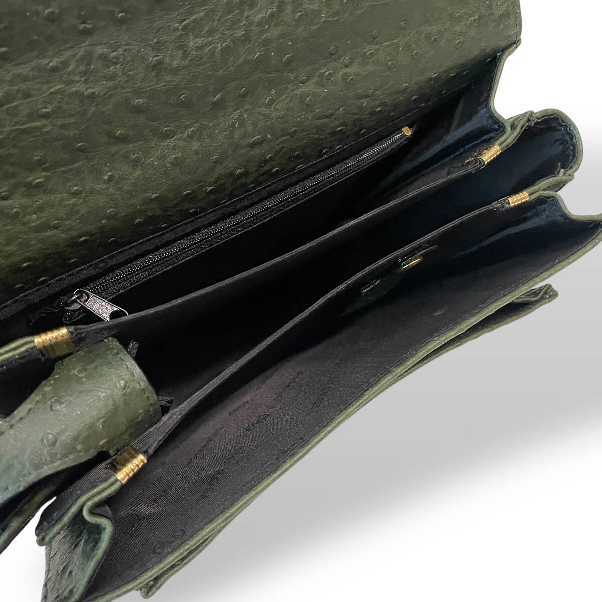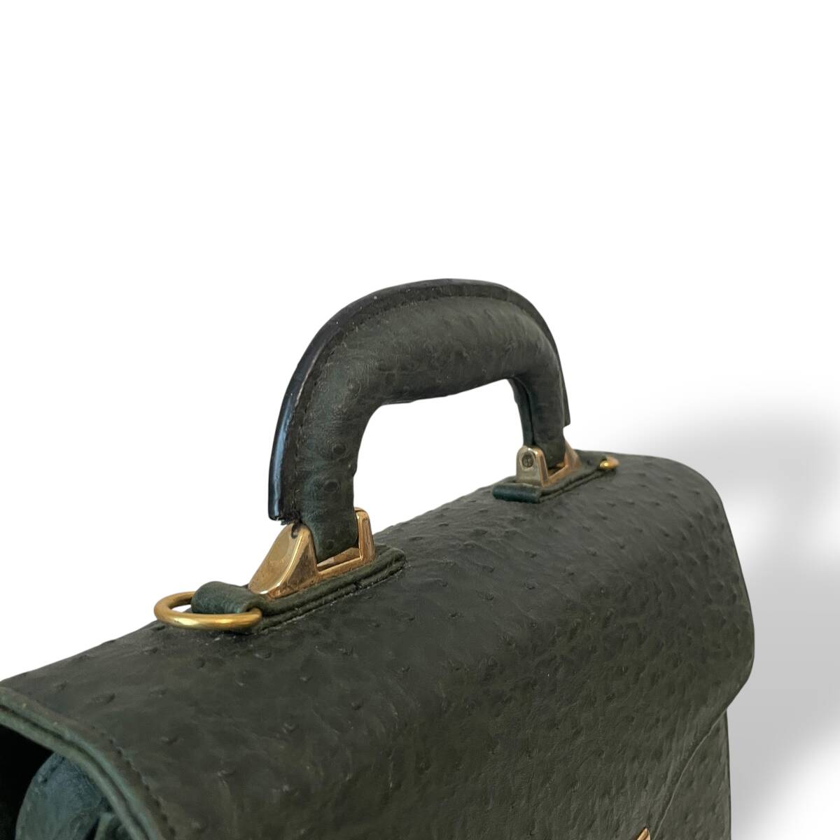1円〜 ◇高級 入手困難品◇ DES ROSA オーストリッチ フラップ グリーン ゴールド金具 ハンドバッグ トートバッグ フォーマルバッグ
