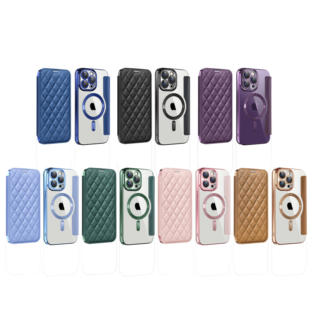 MagSafe 対応リングを搭載したダイヤキルトPUレザー手帳型ケース。