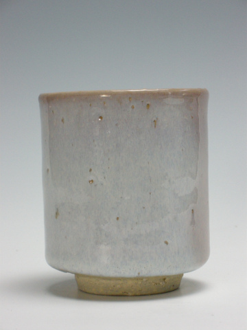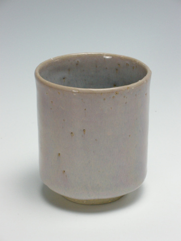 今回出品の作品は、伝統的な技法に現代的な感性を融合させた作風の萩窯変湯呑です。石目が多く荒い大道土に白萩釉を施し、微妙な土、釉薬、焼成により釉薬が窯変の作品になっています。薄紫色の窯変が見事な白萩湯呑です。すばらしい出来栄えのお湯呑をご家庭に、ご贈答に。是非この機会にお求め下さい。