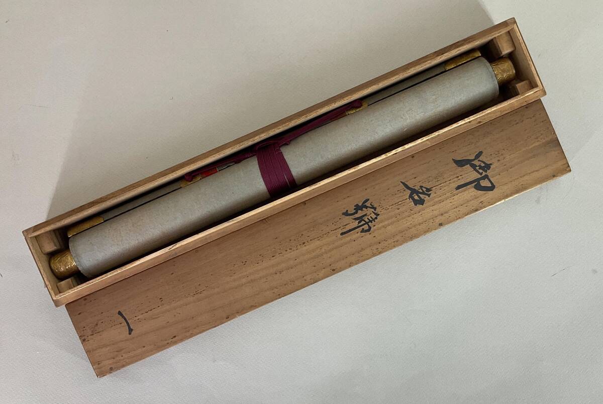 古い掛け軸は軸先を固定している接着剤が弱り、輸送途中の衝撃で軸先が外れてしまう場合がございます。