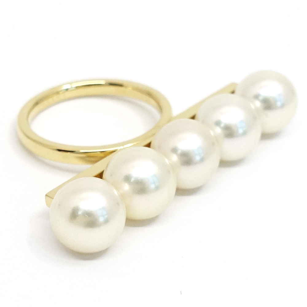 【栄】タサキ K18YG バランス シグネチャー リング 5P あこや真珠 指輪 田崎 ジュエリー 750YG その他 R-4398-18KYG【仕上済】