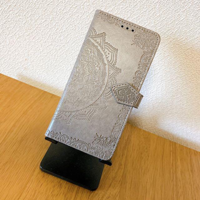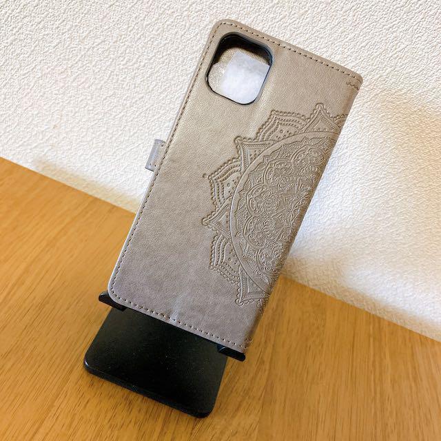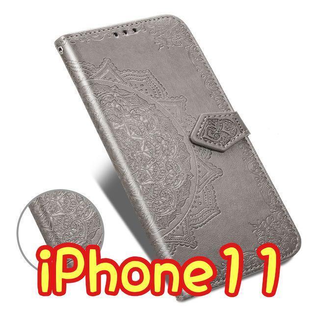 エンボス加工スマホケース 手帳型 iPhone11 グレー