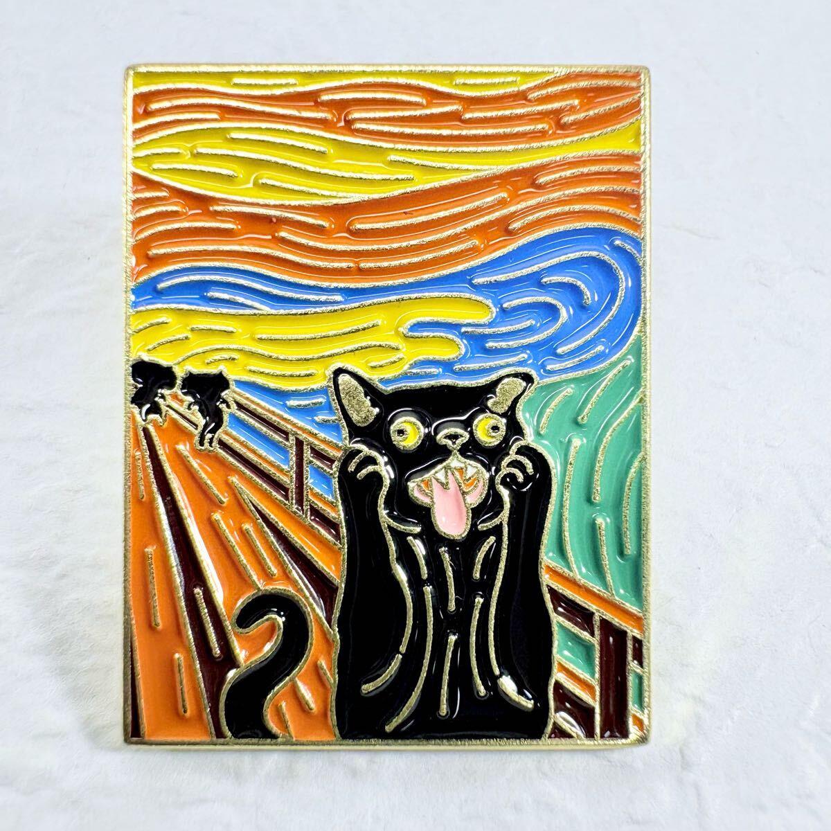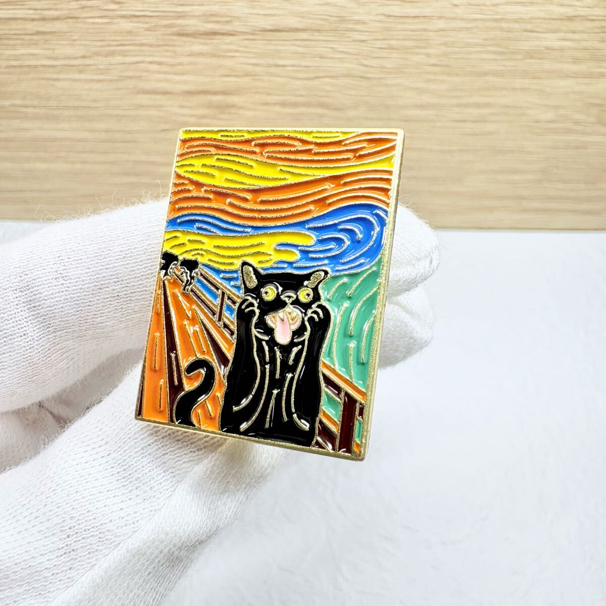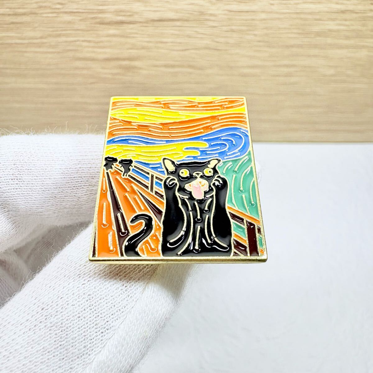 【ピンバッジ】黒猫 ムンクの叫び 絵画 アート パロディ