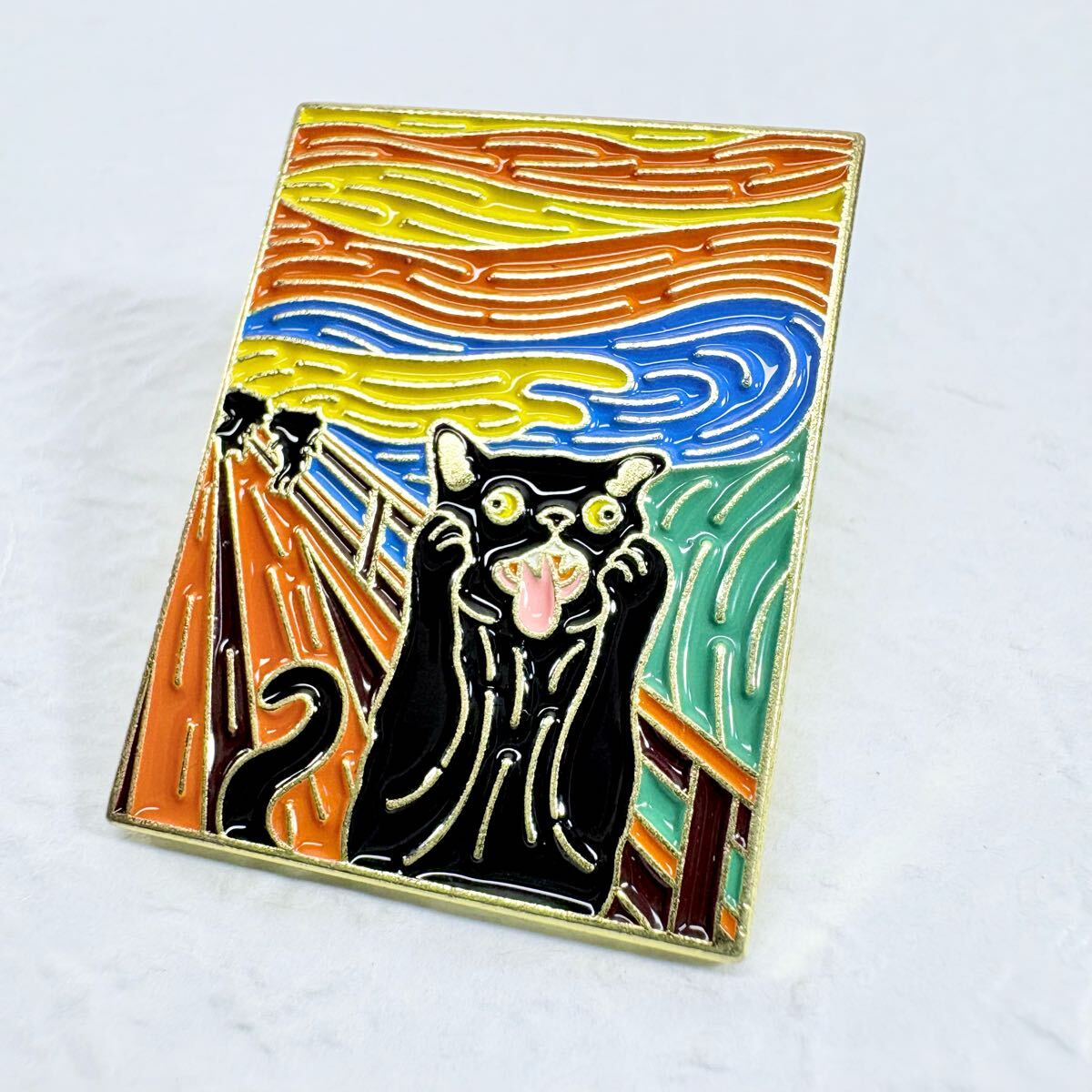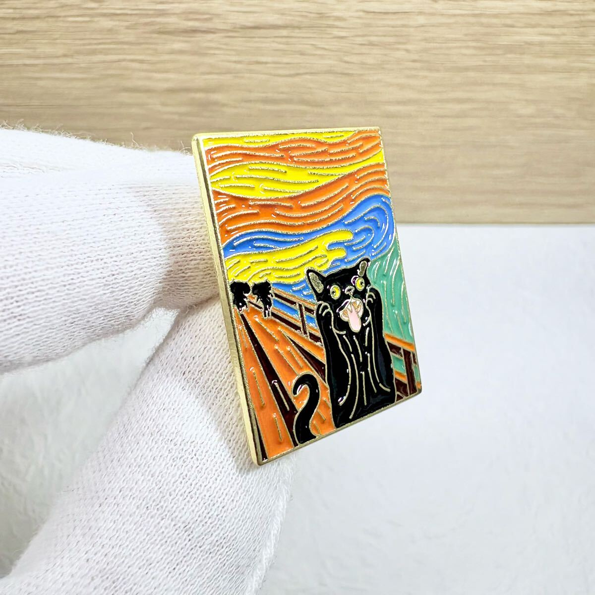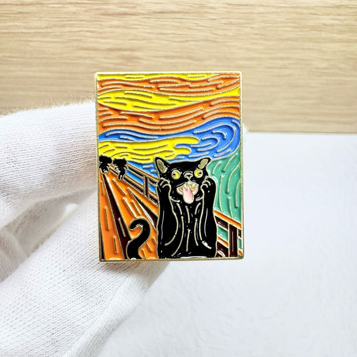 【ピンバッジ】黒猫 ムンクの叫び 絵画 アート パロディ