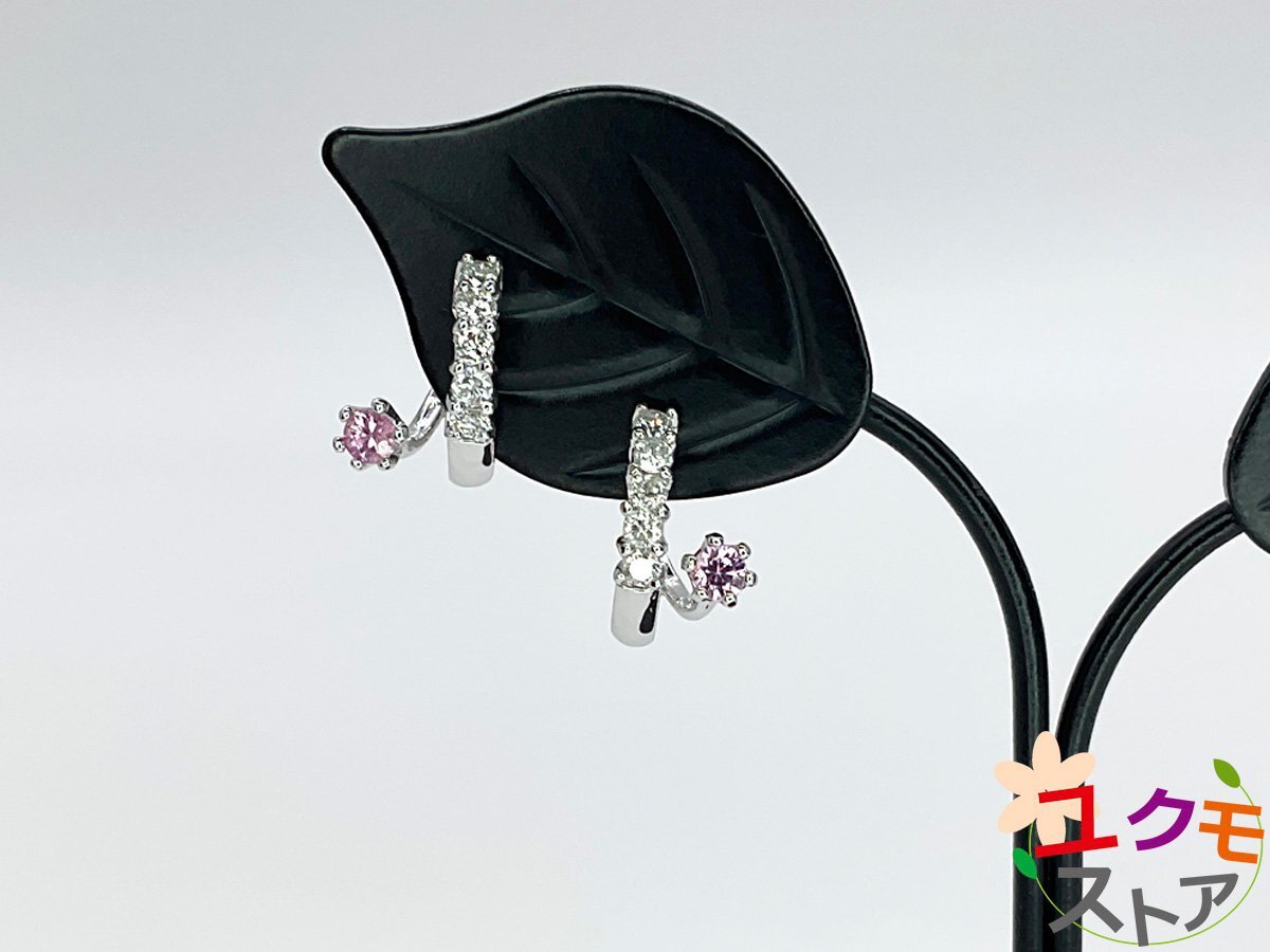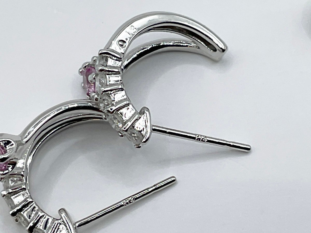 14金ホワイトゴールド/ダイヤモンド0.13ct×2・ピンクサファイア