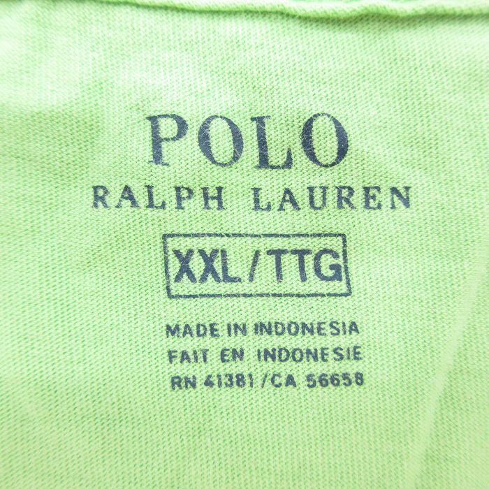 【商品名】 XL★古着 ラルフローレン 半袖 ブランド Tシャツ メンズ ワンポイントロゴ 大きいサイズ コットン Vネック 黄緑