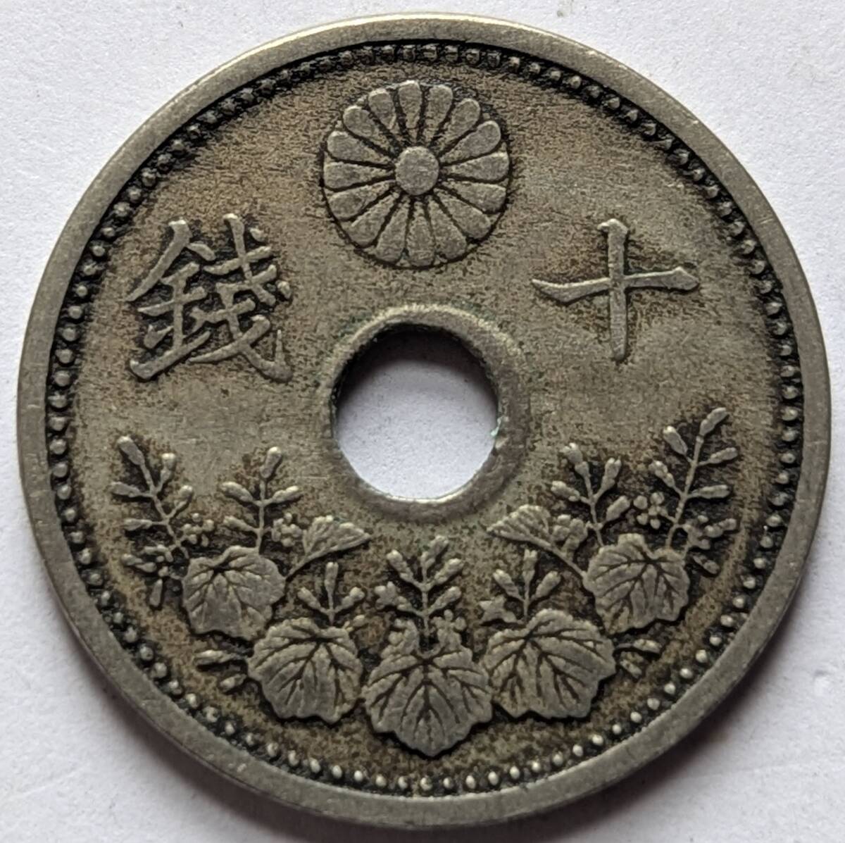1923年(大正12年)10銭 白銅貨 直径22.0mm 厚さ1.2mm 重さ3.75g
