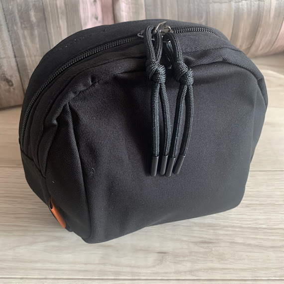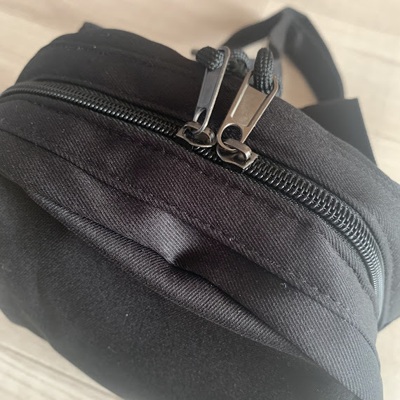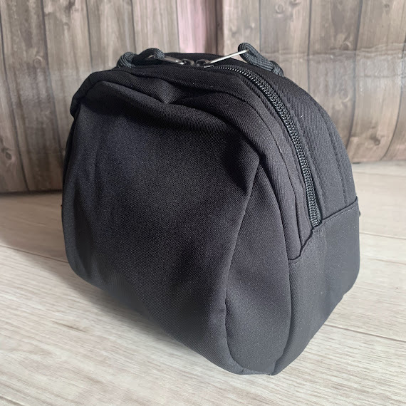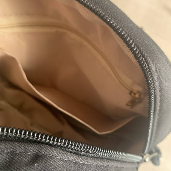 内側には、ファスナー付きポケットと仕切りポケットがついていて