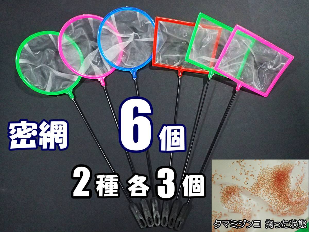 【送料無料】密網 ネット 6個(2種各3個) 角・丸  水槽用品  即決 ミジンコ メダカ エビ等用に ごみ取り 魚網 玉網 タモ網