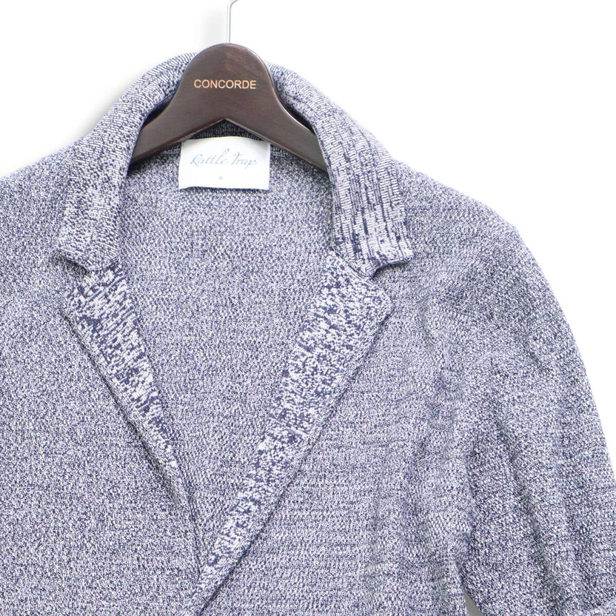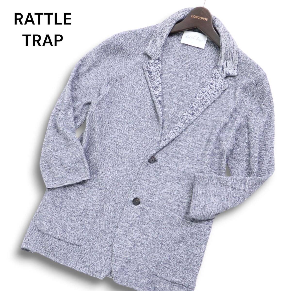 【美品】RATTLE TRAP メンズビギ 春夏 メランジ コットン ニット 7分袖 ジャケット カーディガン Sz.M メンズ 紺