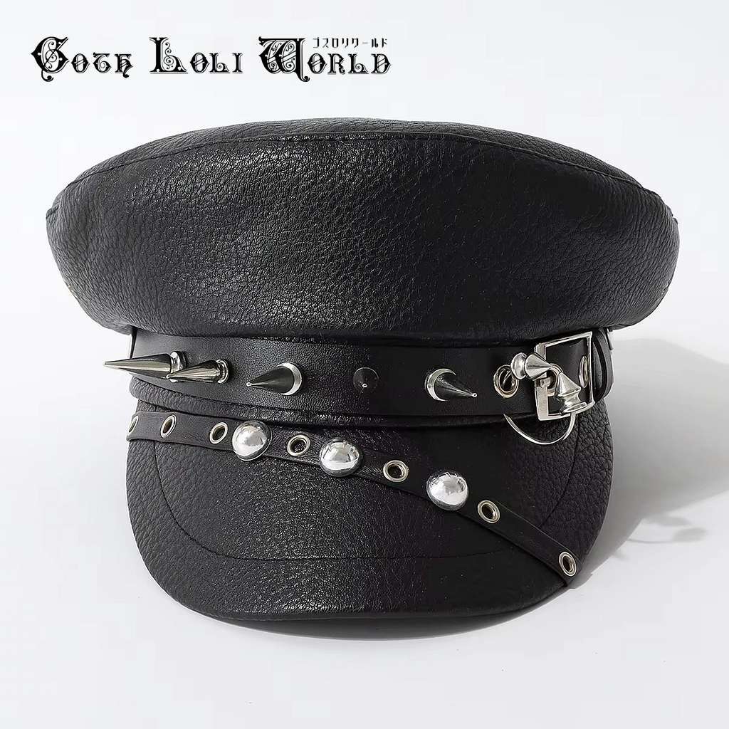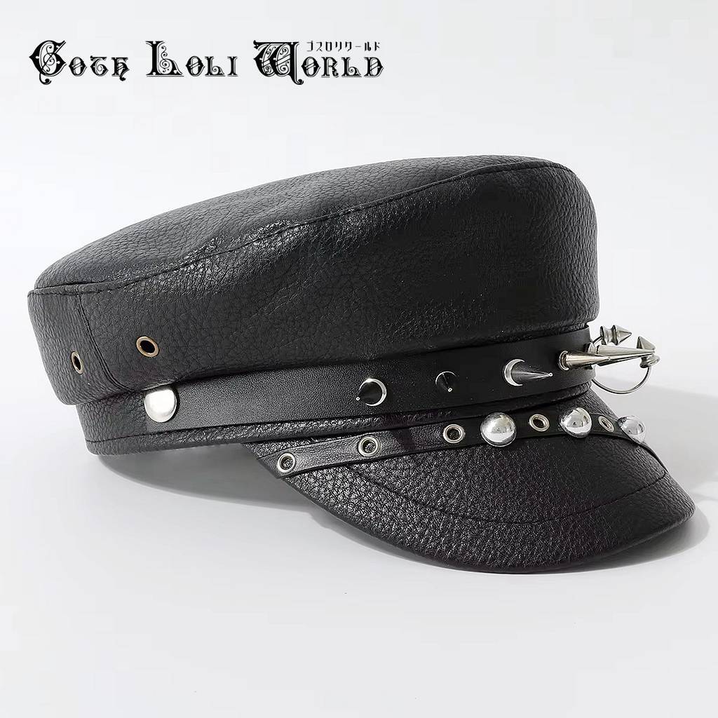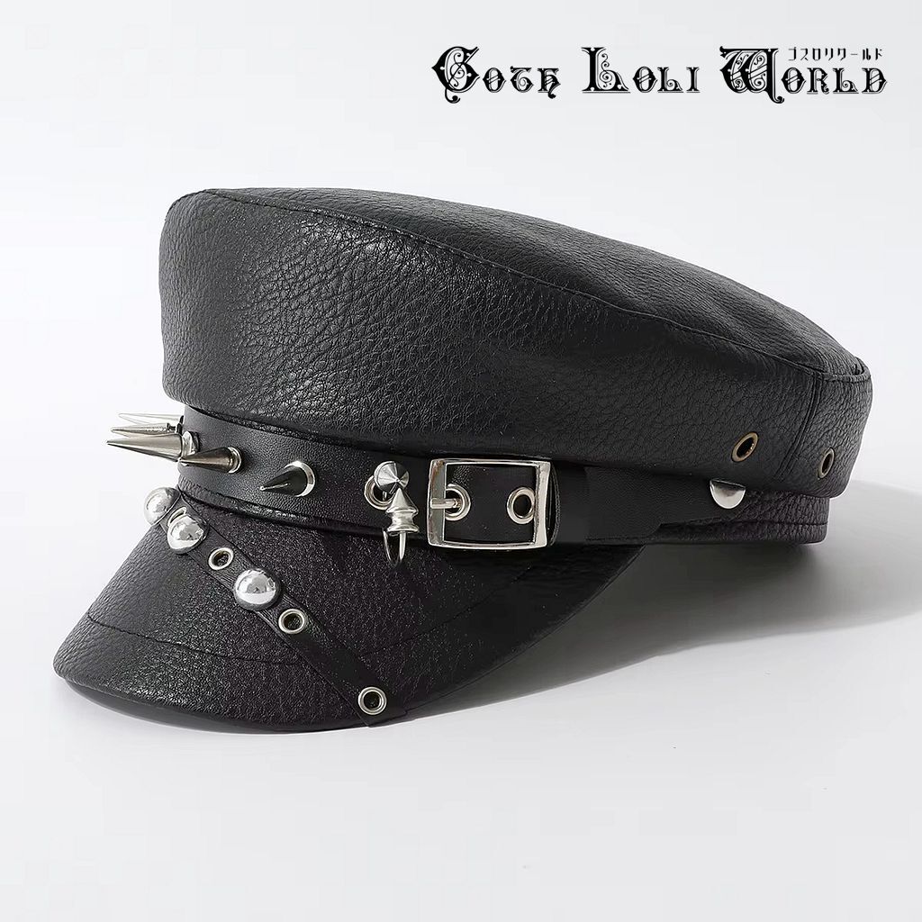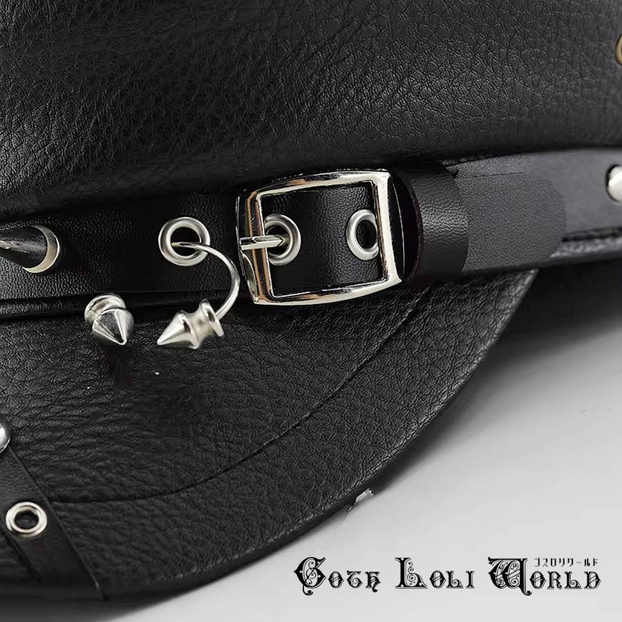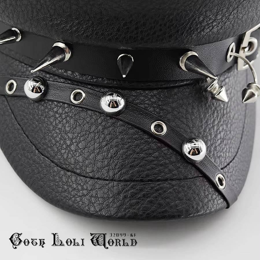 即納 CE-AS073 スタッズ鋲 PUレザー キャップ キャスケット 帽子 ビジュアルファッション パンク ロック ユニセックス ビジュアル系