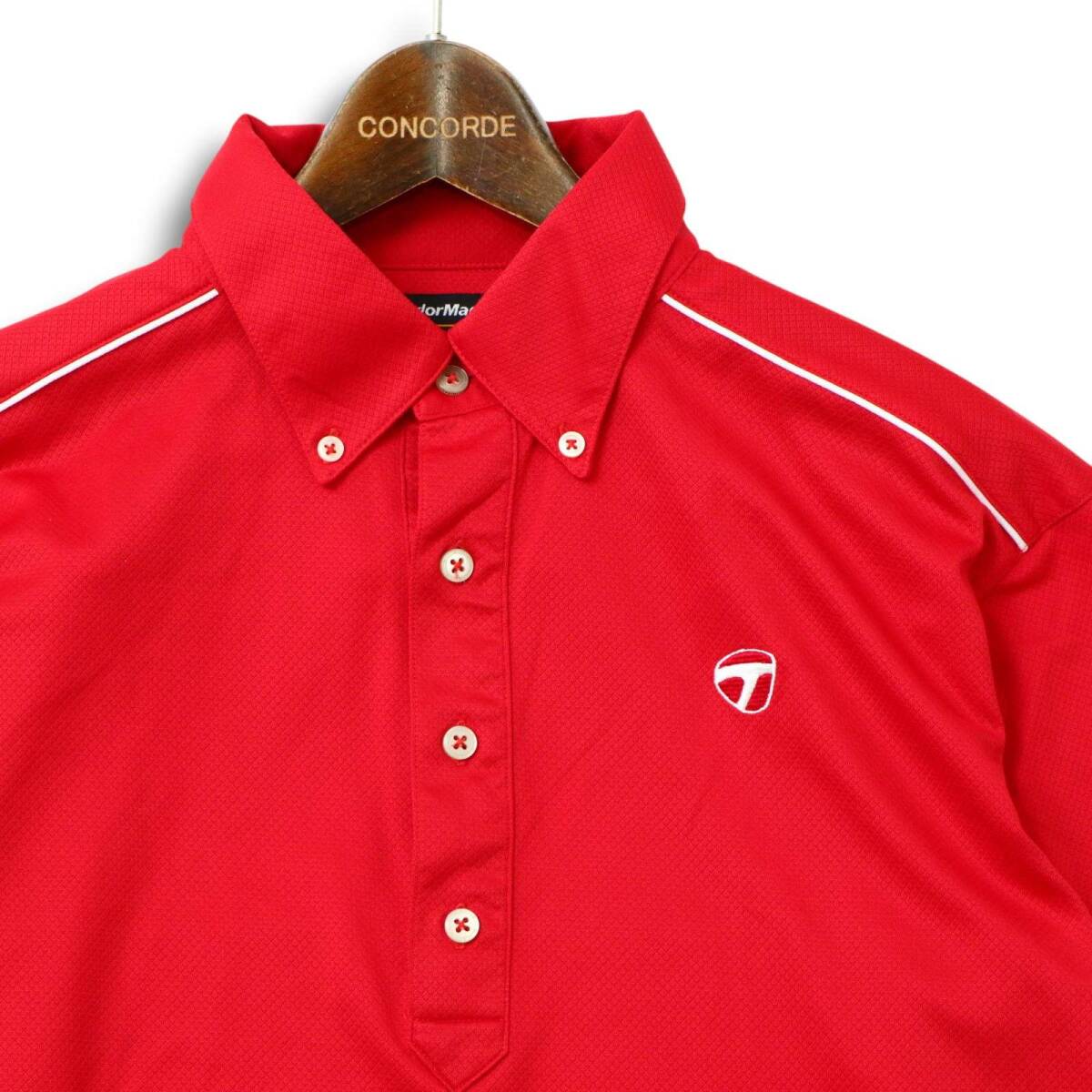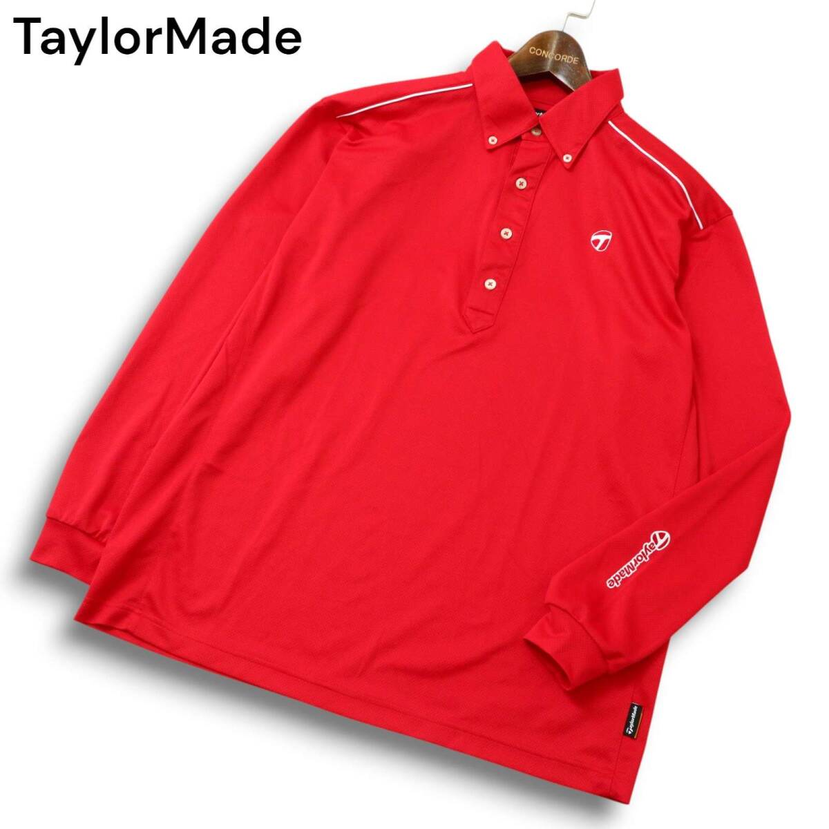 TaylorMade テーラーメイド ゴルフ 通年 ロゴ刺繍★ ポリ100% 長袖 ボタンダウン ポロシャツ Sz.O メンズ 大きいサイズ 赤