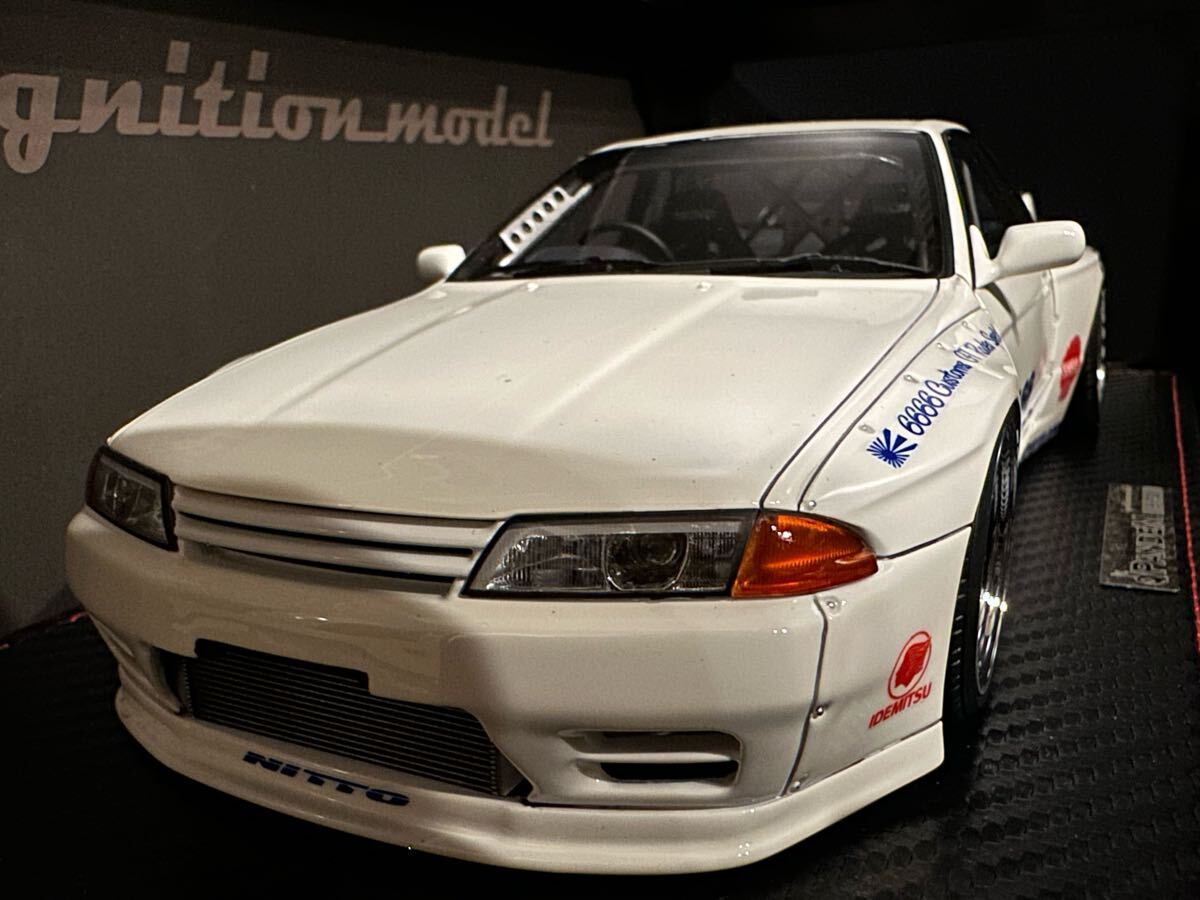 パンデム「GT-R(R32)」を1/18スケール レジンモデルで再現。ロケットバニー17インチメッシュホイール装着。ロールバーはシルバー、大径マフラー、バケットシート装着。
