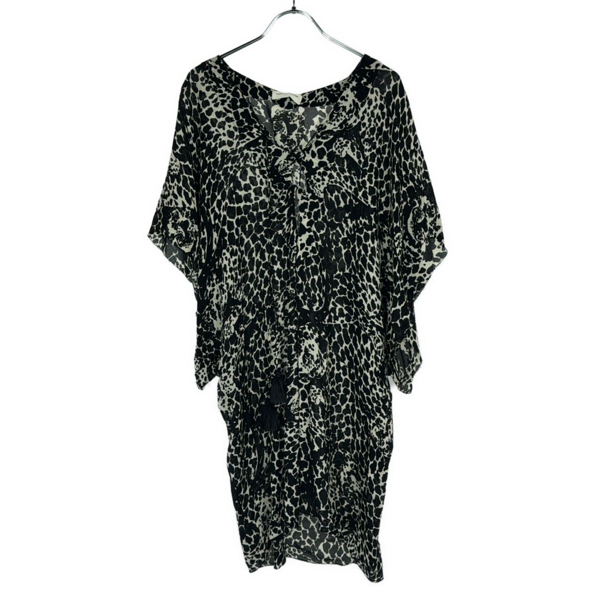 SAINT LAURENT PARIS サンローラン パリ 19SS Leopard Blouse オープンネックレオパードシアーチュニック ブラック 40 ITPREEE5PV4U