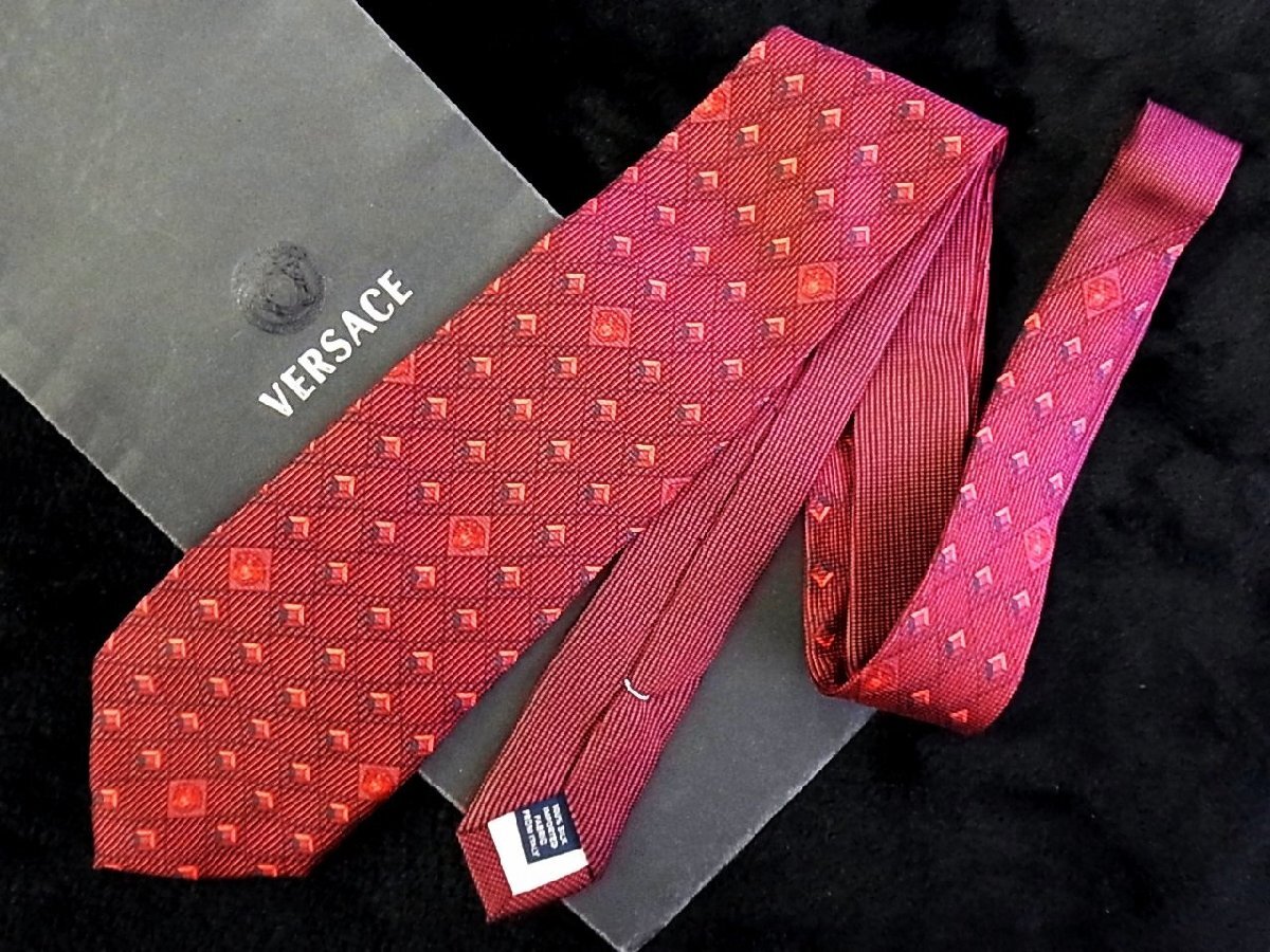 ★今週の特売★6487★高級ブランド【キャラ柄】★ヴェルサーチ【スクエア メデューサ 格子 柄】ネクタイ★