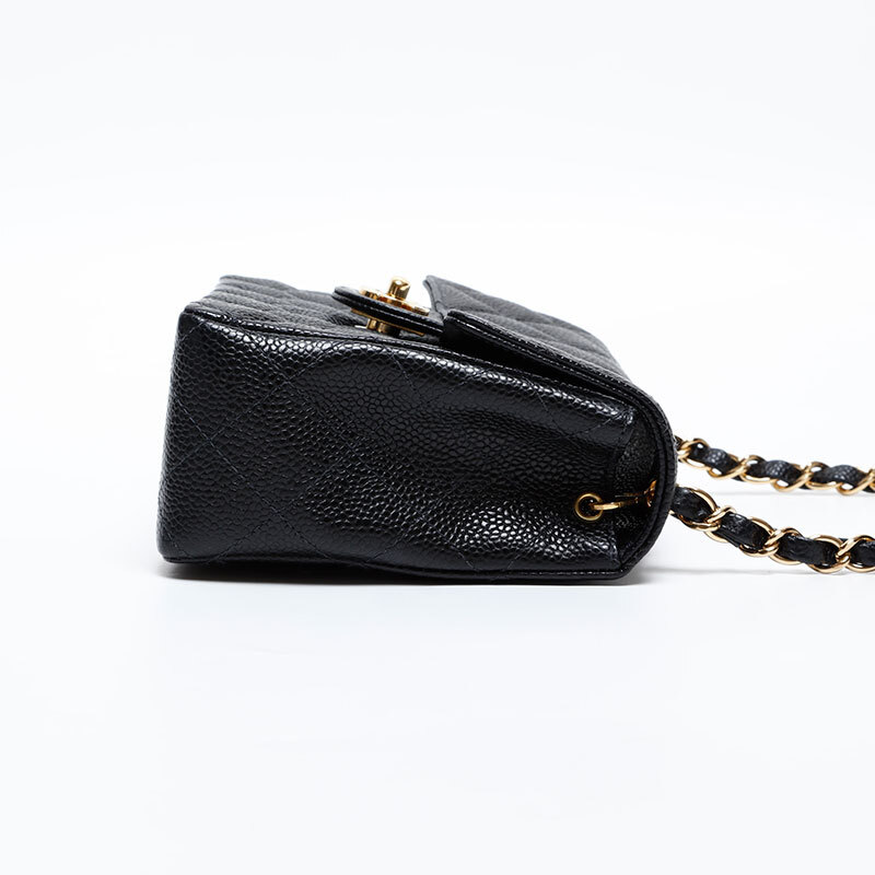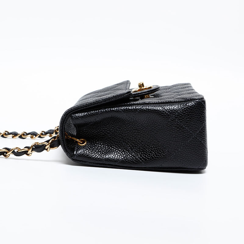 極美品 CHANEL 7番台 2002-2003 キャビアスキン ミニ マトラッセ ショルダーバッグ ブラック