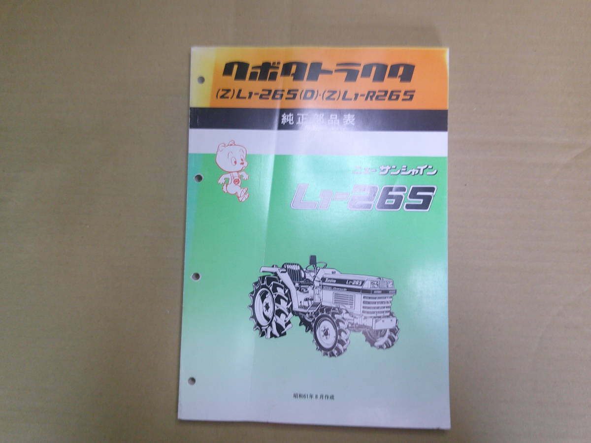 ⑨送料無料!クボタトラクター L1-265(D) (Z)L1-R265 純正部品表 パーツリスト パーツカタログ リバース 全農 サンシャイン 久保田