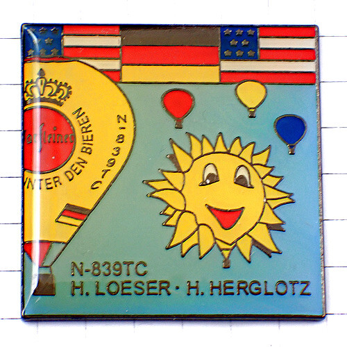 | "ピンバッジ・笑顔の太陽と気球と国旗アメリカ/USA星条旗ドイツ酒ビール WARSTEINER BEER BALLOON GERMANY"の商品説明 | |
