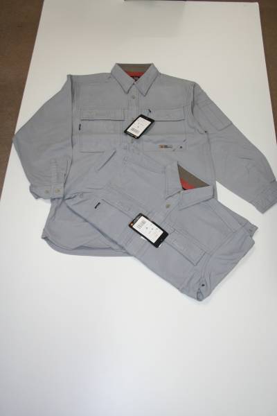 藤和のオールシーズンまたは秋冬用 厚地作業着、長袖シャツ(3415-25グレー)を2枚組にして特別価格にて提供します。