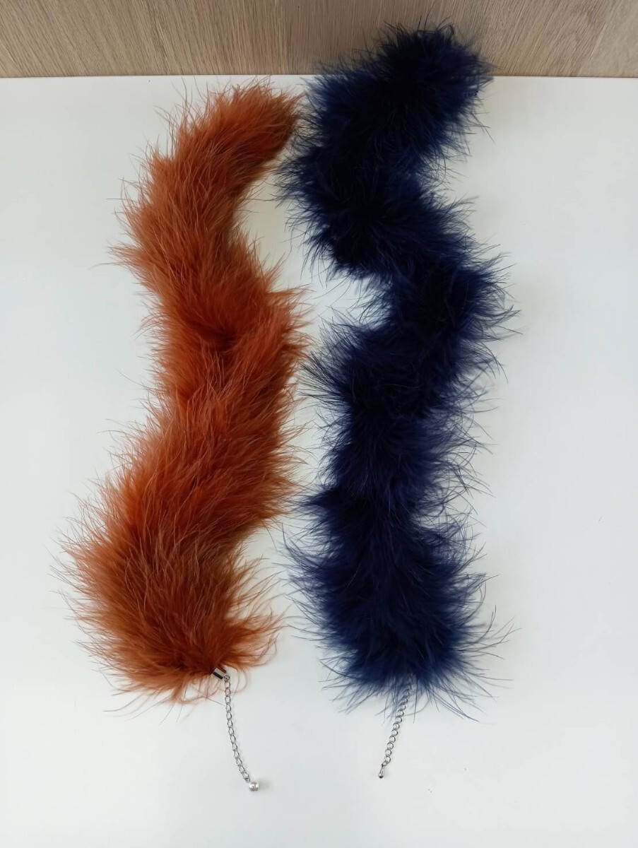 【中古品】美品 ファー マフラー ネックレス パーティ 小物 ブルー オレンジ 2個セット