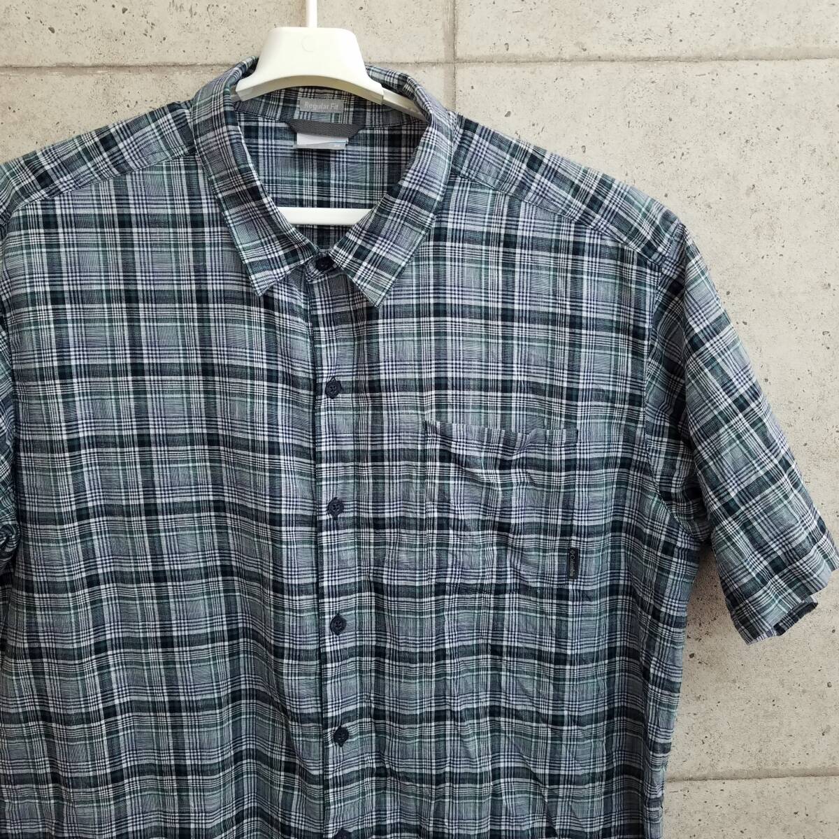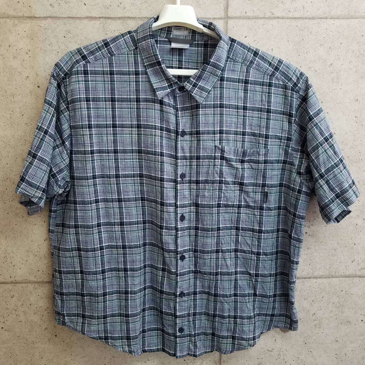 中古 アメリカ古着 Columbia コロンビア 半袖シャツ メンズ 2XLサイズ相当 XXL 3L 紺 緑 白 チェック ビンテージ カジュアル 送料無料