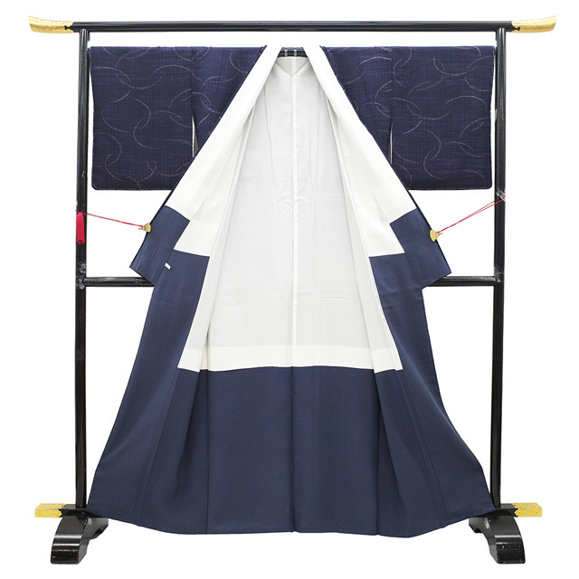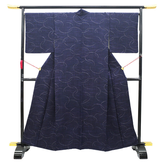 深みのある濃紺紫に、洗練されたリング柄が印象的なモダン 小紋 です。