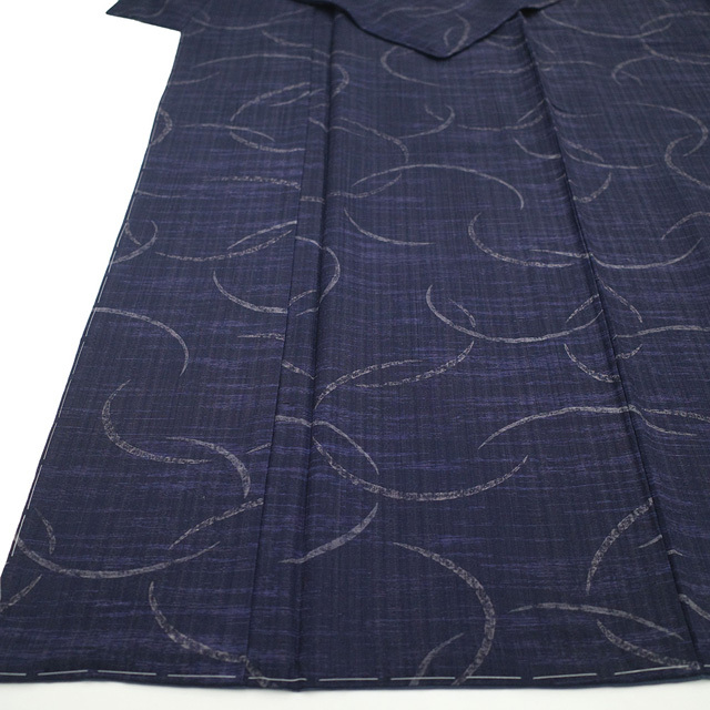 小紋 着物 未使用 正絹 袷 手染め 濃紺紫 霞 リング柄 カジュアル 新古品 仕立て上がり 身丈163 裄丈67.5 Lサイズ みやがわ sb15951