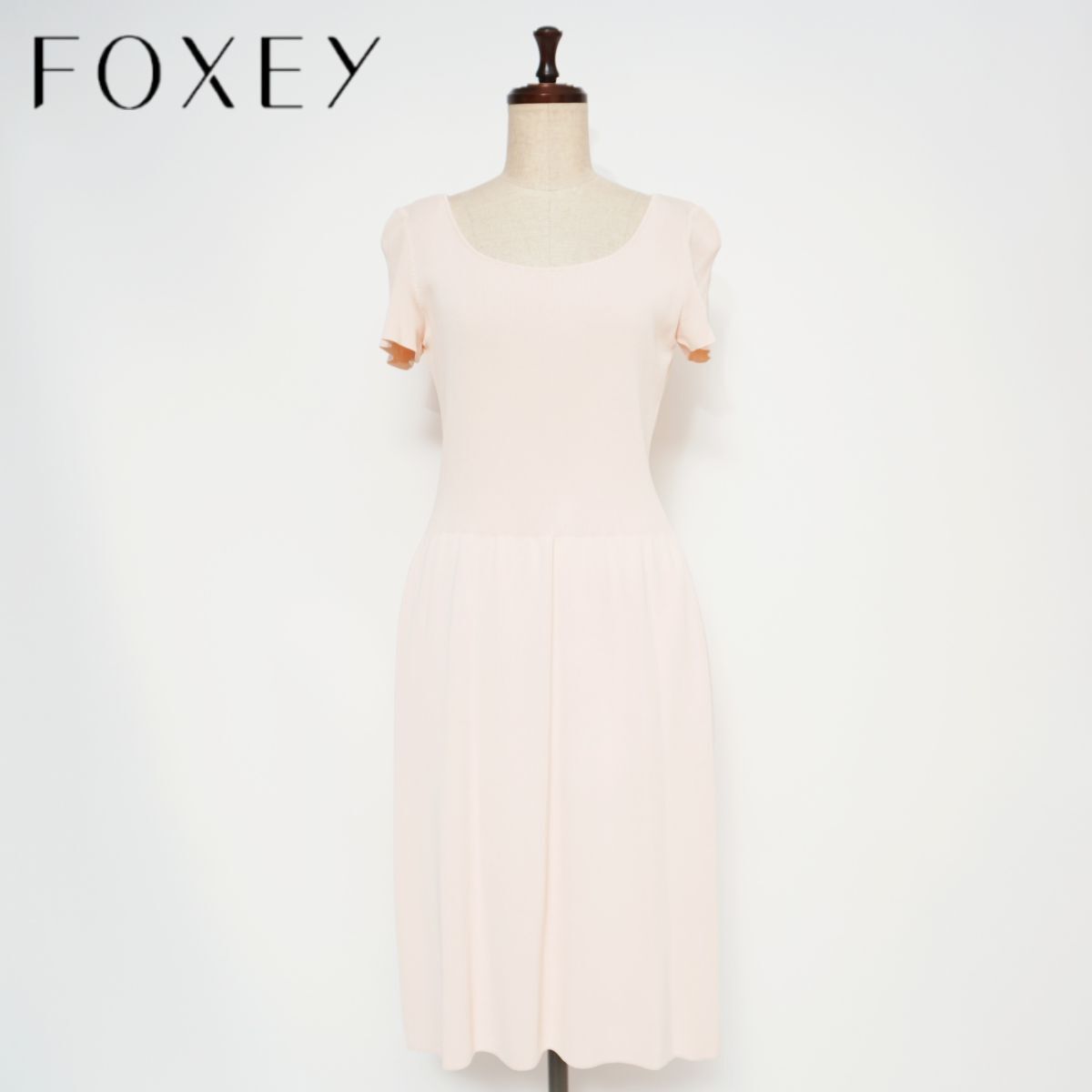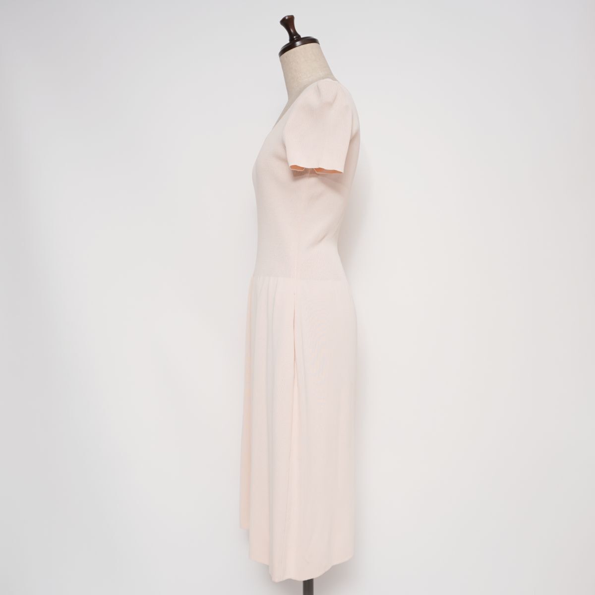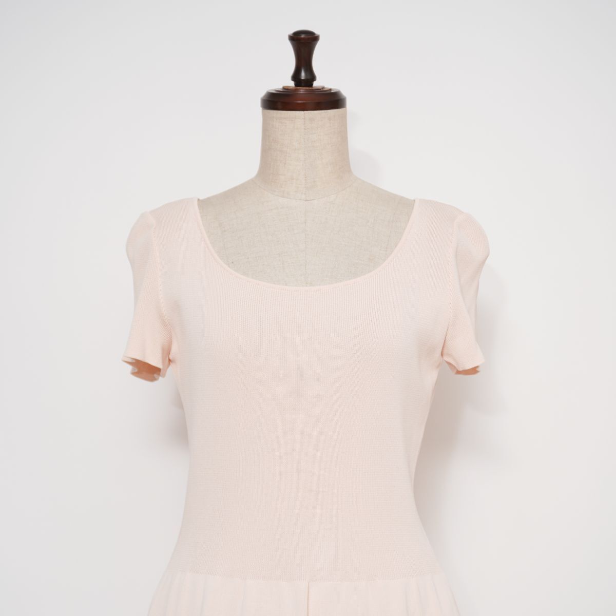 美品 FOXEY BOUTIQUE フォクシーブティック クルーネックニットワンピース ミモレ丈 裏地なし レディース ベビーピンク サイズ40*ED797