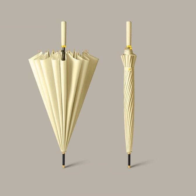 【頑丈な16本骨】16本骨は柔軟で丈夫なグラスファイバーを採用し、16本骨にすることで今までにない強度と耐久性を実現します。少々の強風にあおられても、安易に折れたり曲がったりする心配ありません。耐久性で長く安心して使える傘になっています。