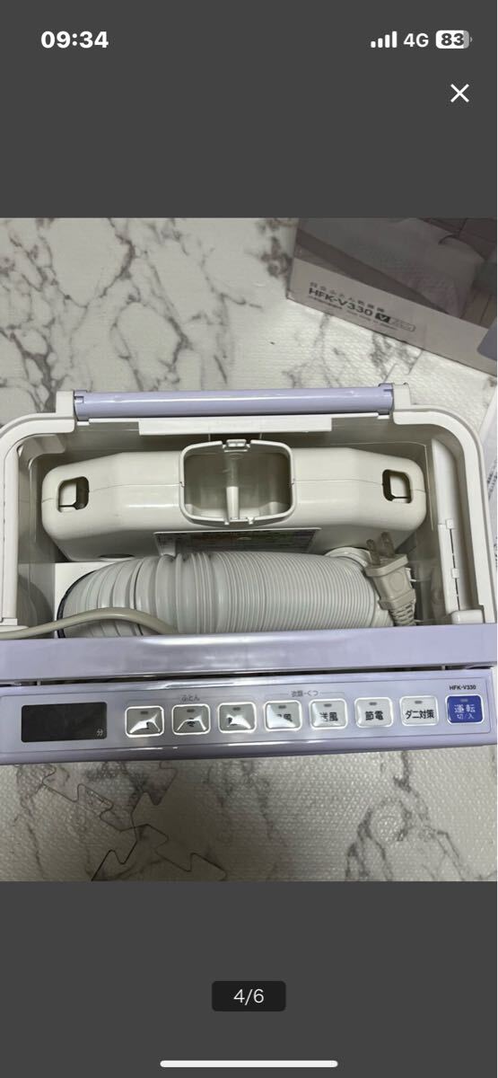 紫色のHFK-V330電気式衣類乾燥機、使いやすい操作パネル付き。