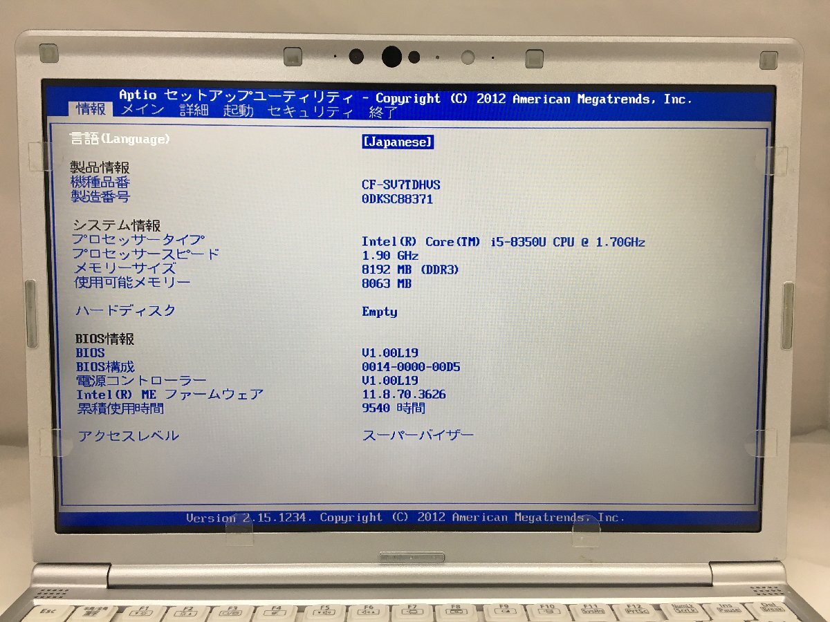 ジャンク/ Panasonic CF-SV7TDHVS Intel Core i5-8350U メモリ8.19GB ストレージ無し 【K18174】