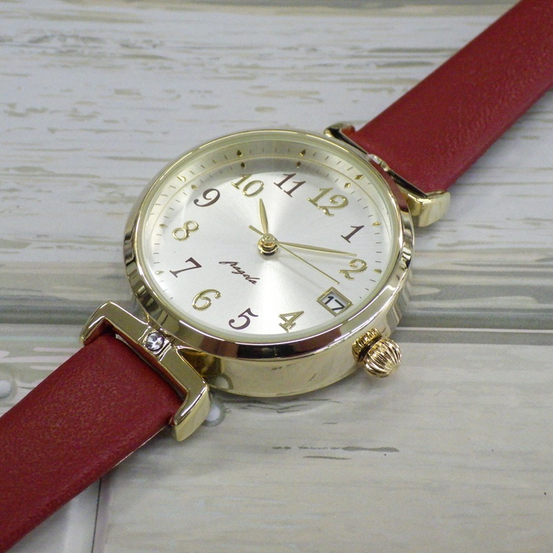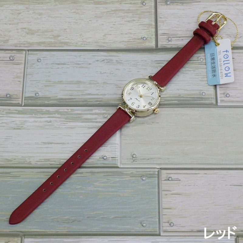 送料無料★follow フォロー fragola N018S5S-1 ラグストーンデイトウォッチ レッド レディース腕時計 日常生活防水 日付 レザーベルト