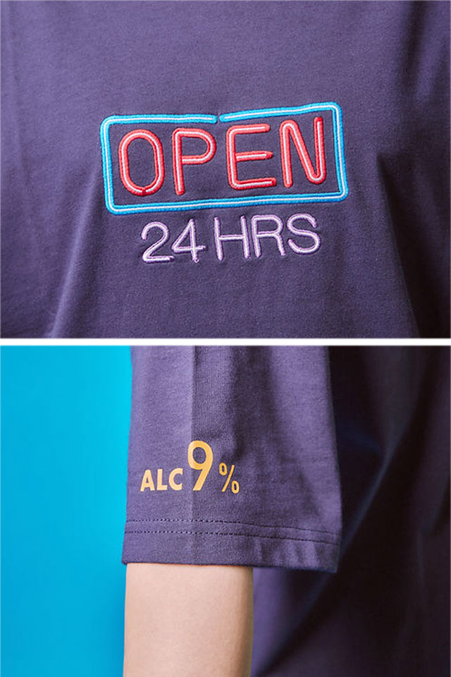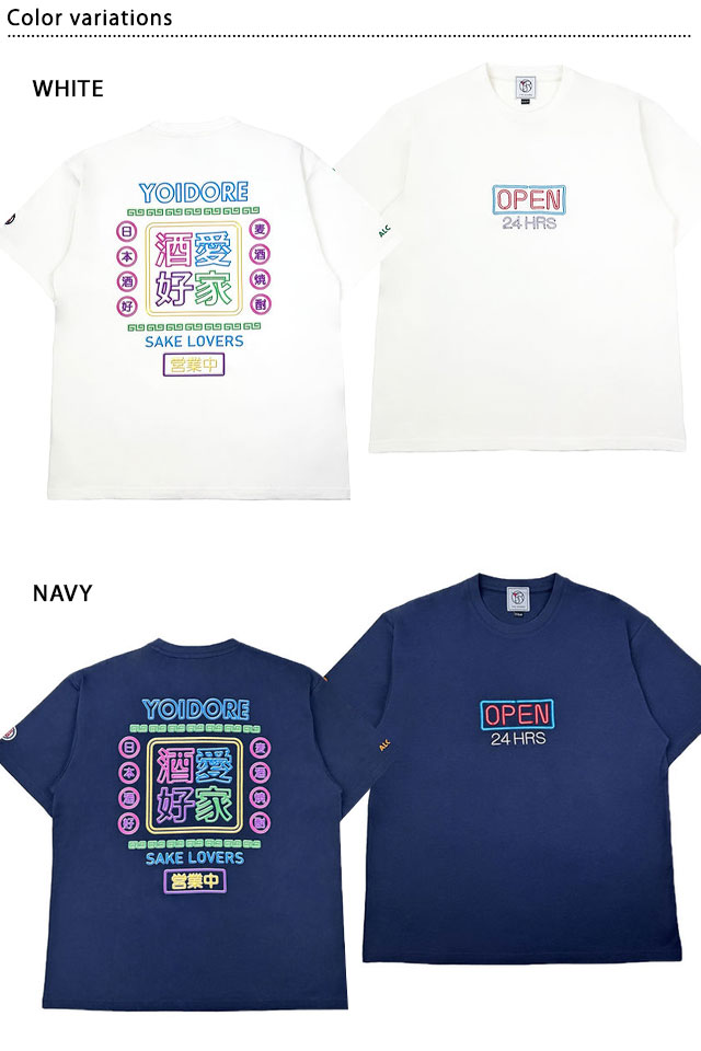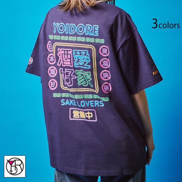 すべての酔いどれに届ける、酔いどれのためのブランド「YOIDORE」より「ネオン半袖Tシャツ(825611)」が入荷してまいりました。 酔いどれ(酔っ払い)に届ける、酔いどれ(酔っ払い)のためのブランド。 お酒をテーマにした様々なデザインを落とし込んで展開。 気鋭のアーティストや酒造メーカー、人気ショップとのコラボレーションや、型にはまらない独特の世界感を表現した新感覚のアパレルブランドです。 老若男女お酒好きな方、お酒のお供にいかがでしょうか。 24時間いつでもお酒を調達できる素晴らしい時代です。 ちょっと呑み足りないな、とかちょっとだけ呑みたいな、って時に輝く24HRS OPENのネオンは安心感の塊ですよね! カラー刺繍と発泡プリントをミックスさせたPOPなネオンデザインはYOIDOREの大人気シリーズ。 ALC9%のストロングは油断禁物!? ややゆったりめのルーズなシルエットは適度なリラックス感があり、ラフな呑みシーンでのコーディネートに取り入れたいマストなアイテム。 全ての商品にシーズン毎にデザインが変わる限定ステッカー付きです。 | ||||||||||||||||||||